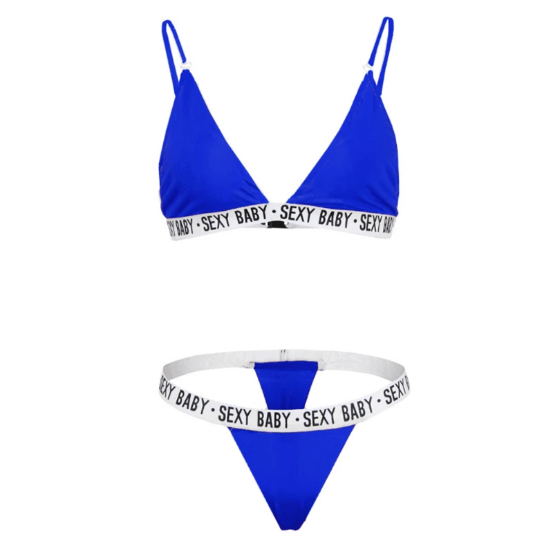 Пикантное бикини 2019, однотонный купальник на бретельках с надпись...