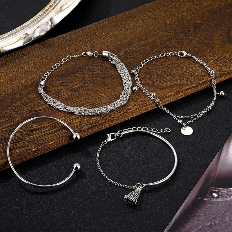 4 шт.компл., Винтажный серебряный цвет, богемные браслеты для женщи...