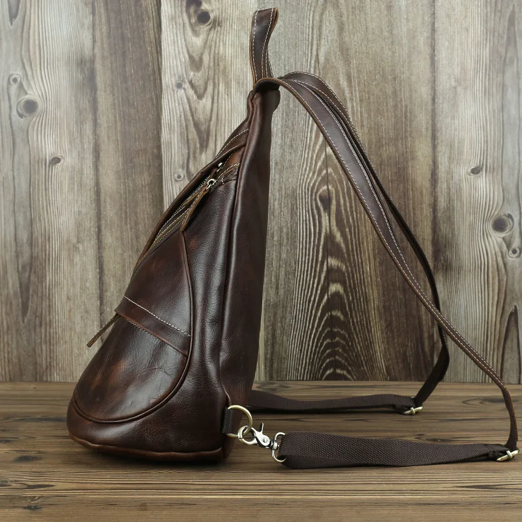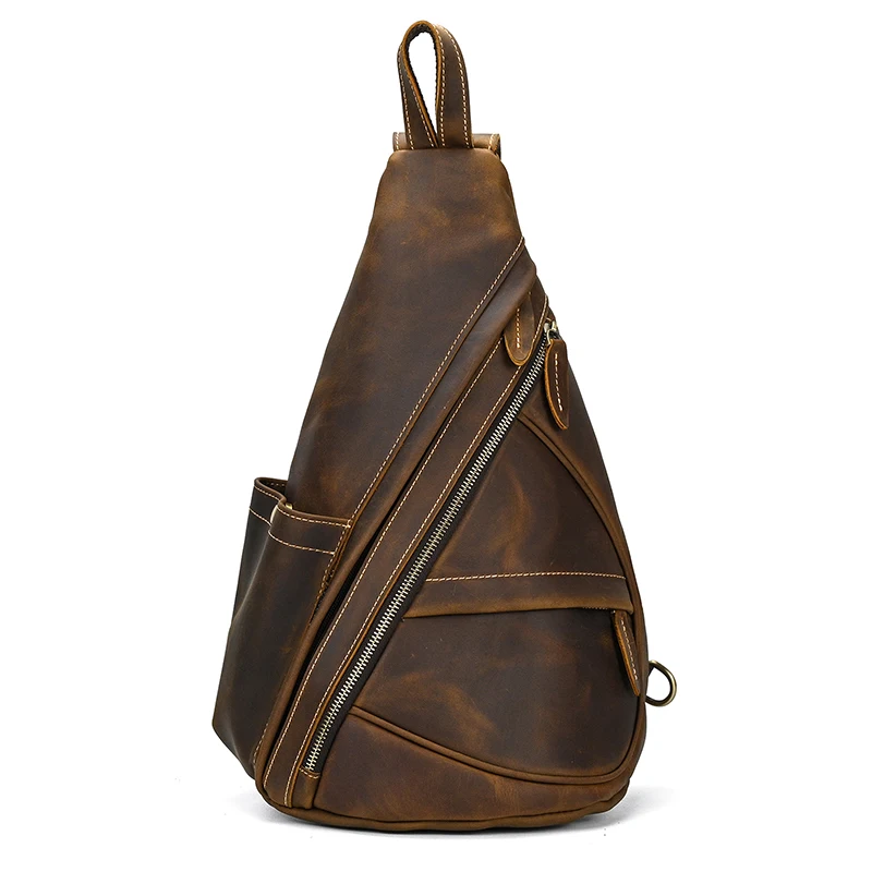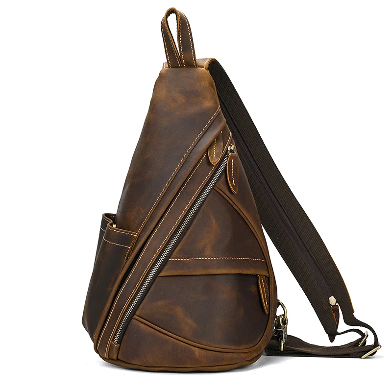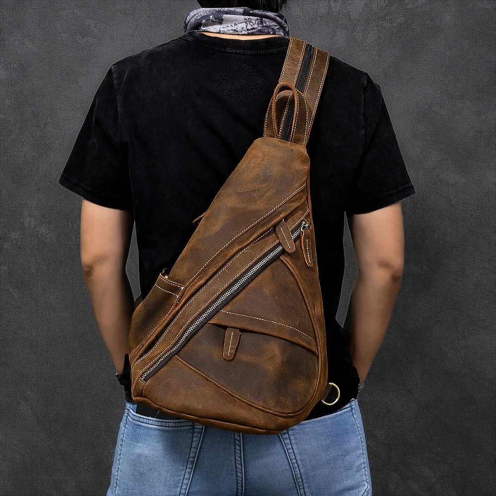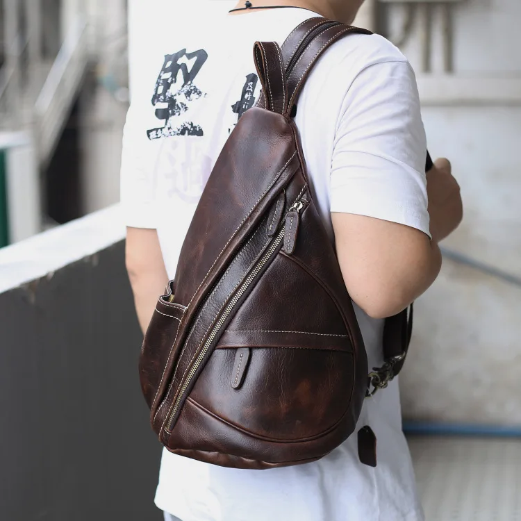 Нагрудной рюкзак из натуральной кожи для мужчин, уличный рюкзак на одно плечо для верховой езды, мужские рюкзаки-слинги из воловьей кожи