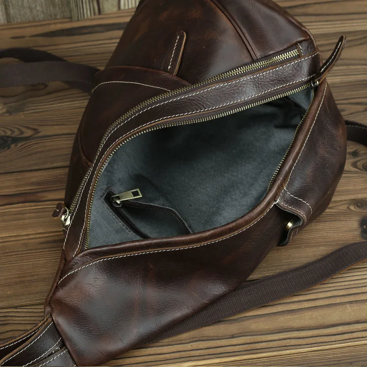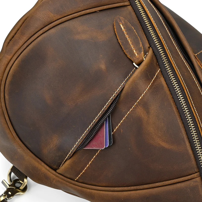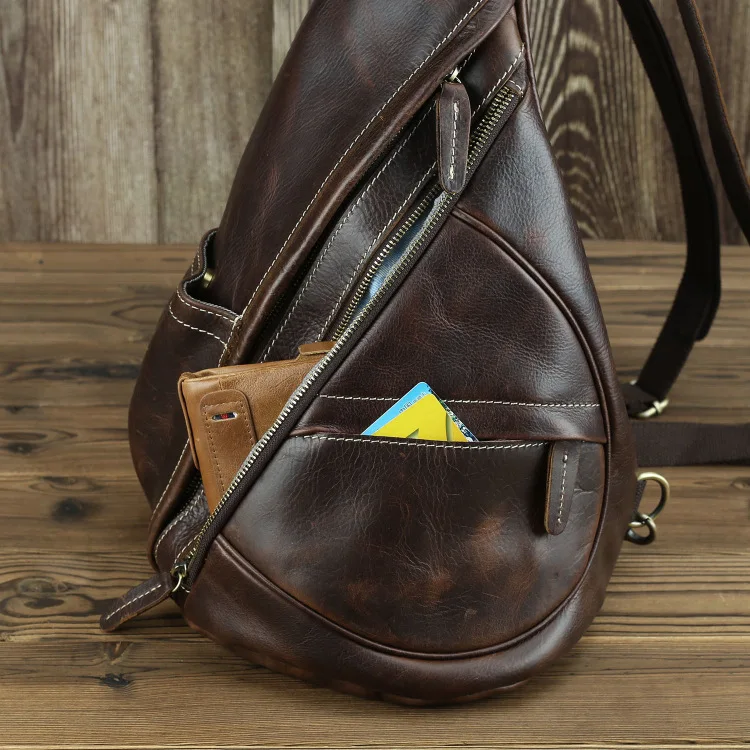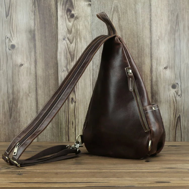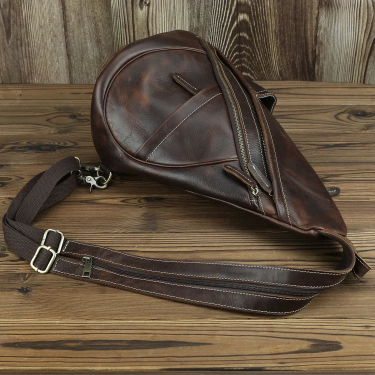 Нагрудной рюкзак из натуральной кожи для мужчин, уличный рюкзак на одно плечо для верховой езды, мужские рюкзаки-слинги из воловьей кожи