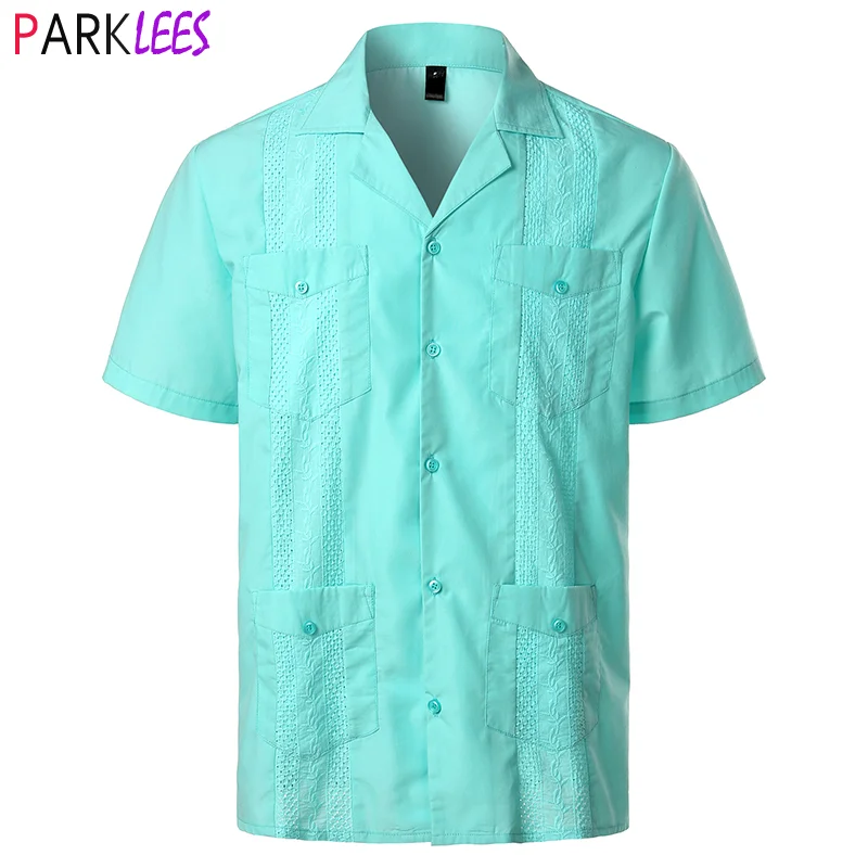 Мужская плетеная рубашка Guayabera, Классическая кубинская рубашка с короткими рукавами, вышивкой и реверсивным воротником, модель 2XL