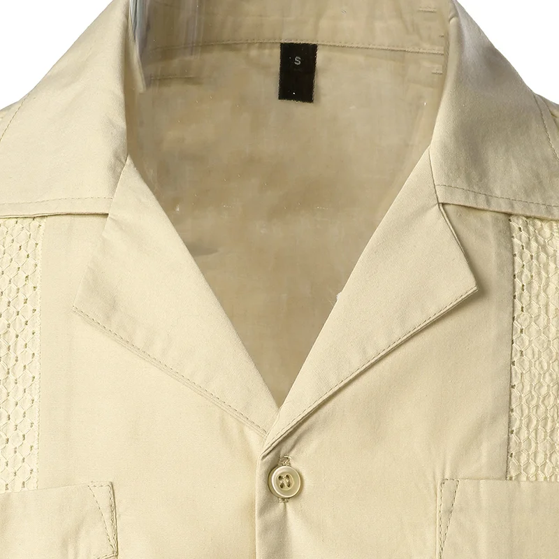 6. Свободная рубашка Guayabera с коротким рукавом из хлопка и льна
