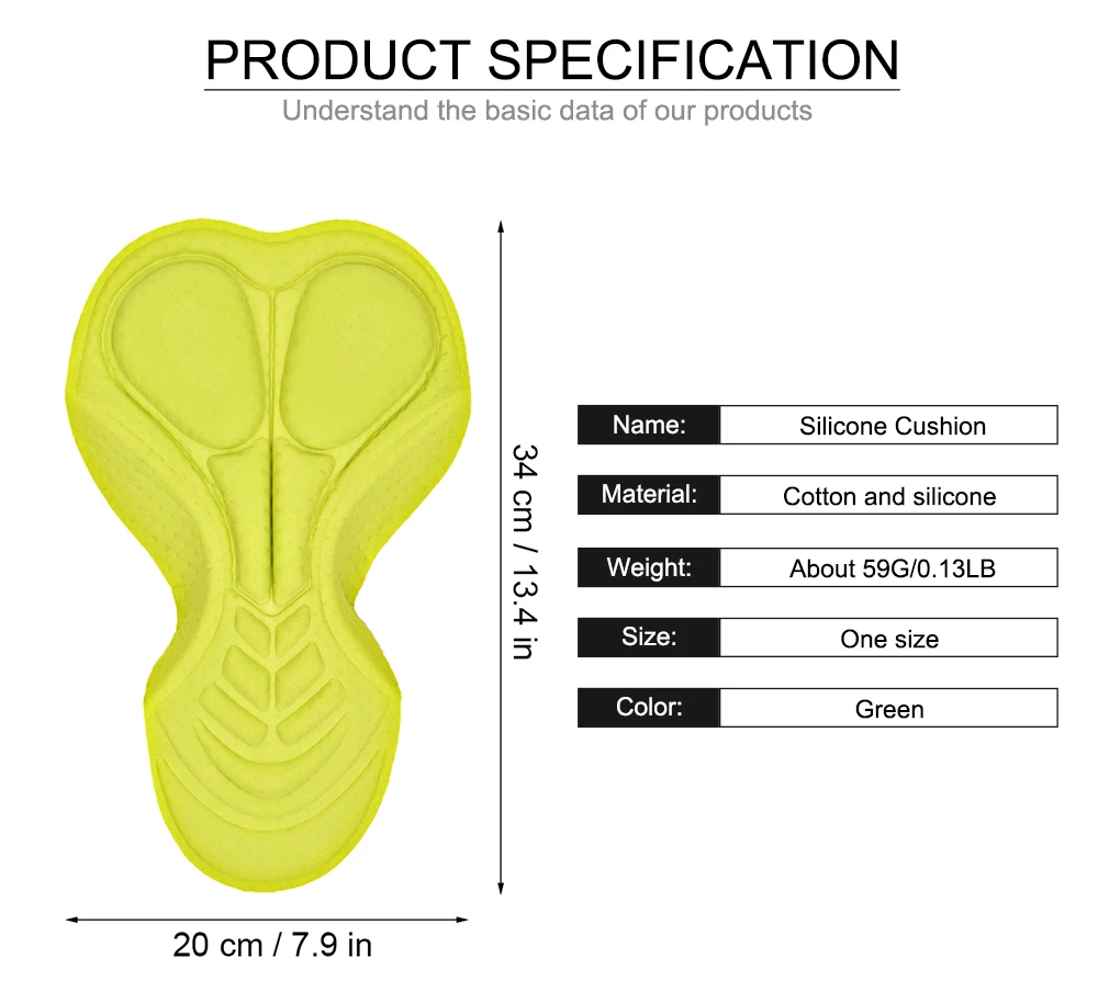 Описание:WOSAWE 5D утолщенная губка силиконовые подушки, мягкие амортизацией, что гарантирует удобство при носке для верховой ездыПодходит для Бег, горный велосипед, велосипедной езды, спиннинг, в помещении и на открытом воздухеОсобенности продукта:Для защиты Ваших бедерДышат и остаются сухимиУдаро поглощающая подкладкаМягкие впитывающие и дышащиеТолстые Силиконовое сиденье ПодушкаНазвание: 5D толстые силиконовые подушкиМатериал: хлопок и силиконаПол: NeutraРазмеры: около 33,5*20 см/13,2*7,9 дюймовВес: 59 г/0.13LB