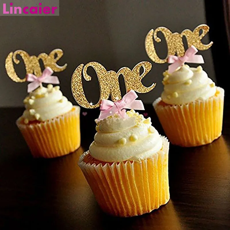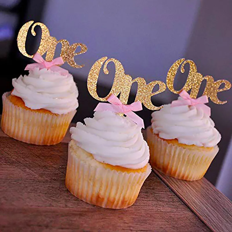 16 шт. золотистый розовый 1 один блестящий бумажный Топпер для капк...