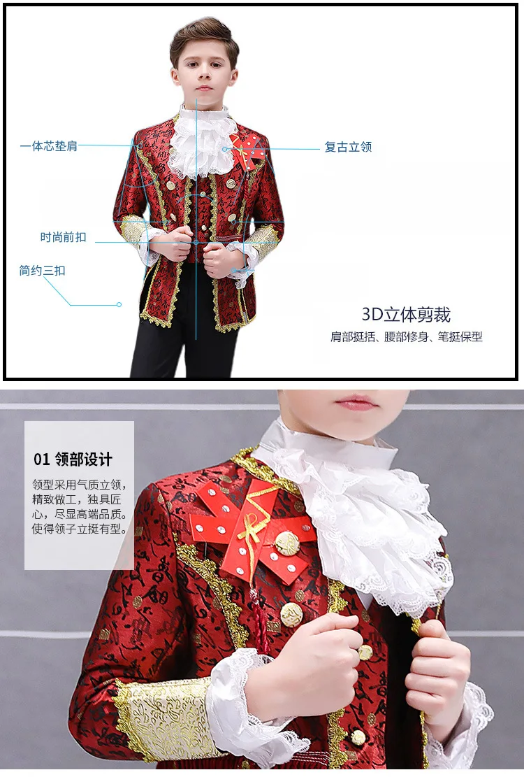 Викторианский костюм короля принца, детское официальное платье для мальчиков, благородные костюмы, придворный пиджак, Хэллоуин, Детское пальто, Королевский блейзер в стиле ретро