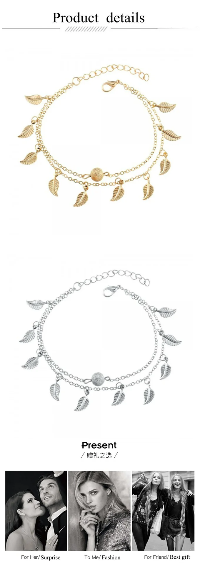 Женский винтажный двухслойный браслет на ногу, украшенный листьями ...