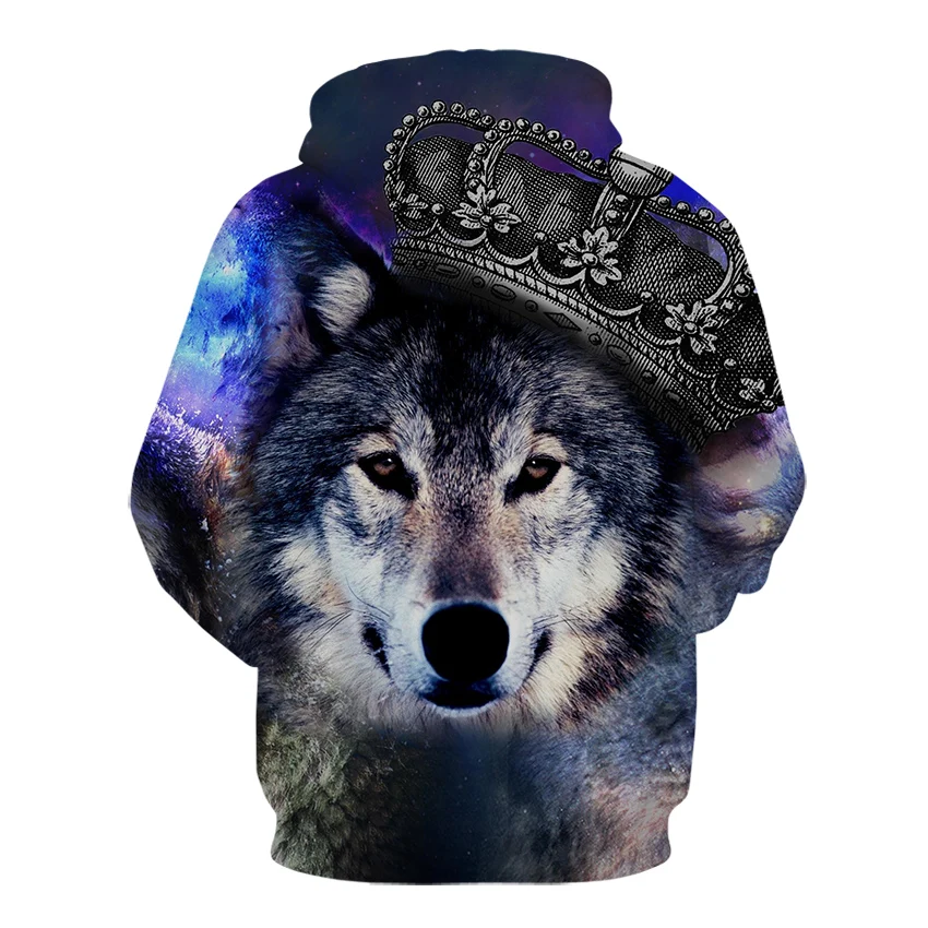 Модные мужскиеженские толстовки с капюшоном и 3D-принтом волка, в с...