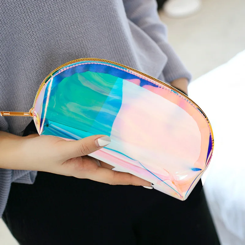 Красочная полукруглая прозрачная дорожная косметичка из ТПУ, сумка для хранения, портативная Женская водонепроницаемая сумка на молнии для ванной комнаты