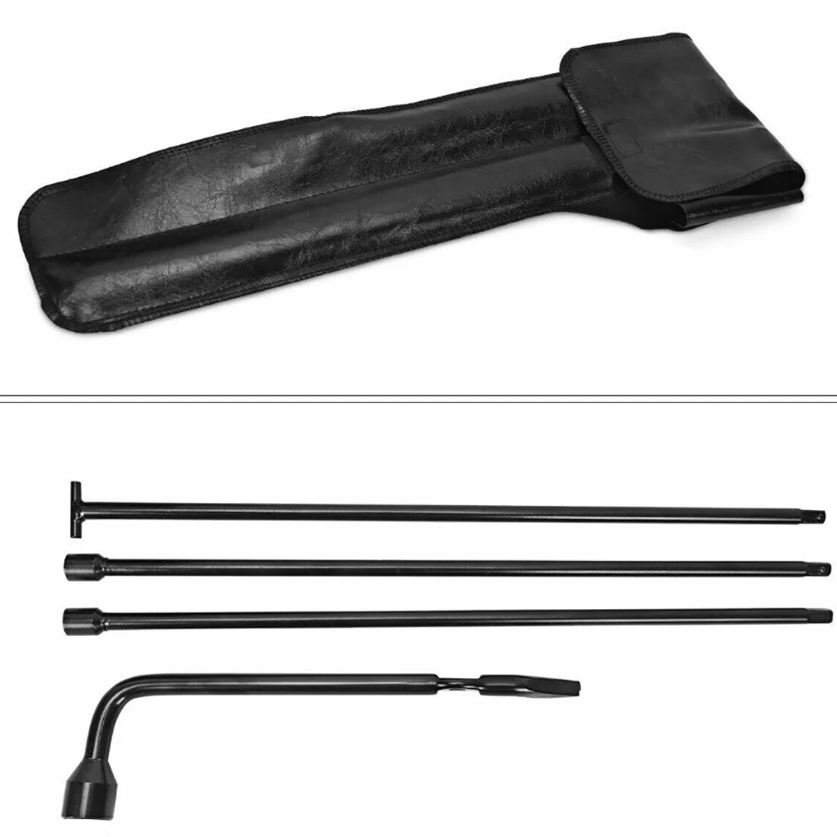 Особенности:-Высокая твердость и прочность, сильное кручение.-Краска против окисления, более прочная.-Удобный чехол для хранения, чтобы держать его вместе и организовывать.-Ослабьте или затяните гайки на шинах.-Опустите запасную шину из-под транспортного средства.-Поднимите домкрат, который поставляется с вашим автомобилем. (Примечание: Джек не входит в комплект)-Три полюса могут быть соединены, и Длина соединительного стержня отличается для каждой модели. Он расположен на квадратном отверстии l-образного ключа.Посылка включает в себя:1 гаечный ключ для шин1x T расширение2x сегменты расширения1x чехол для переноски из искусственной кожи