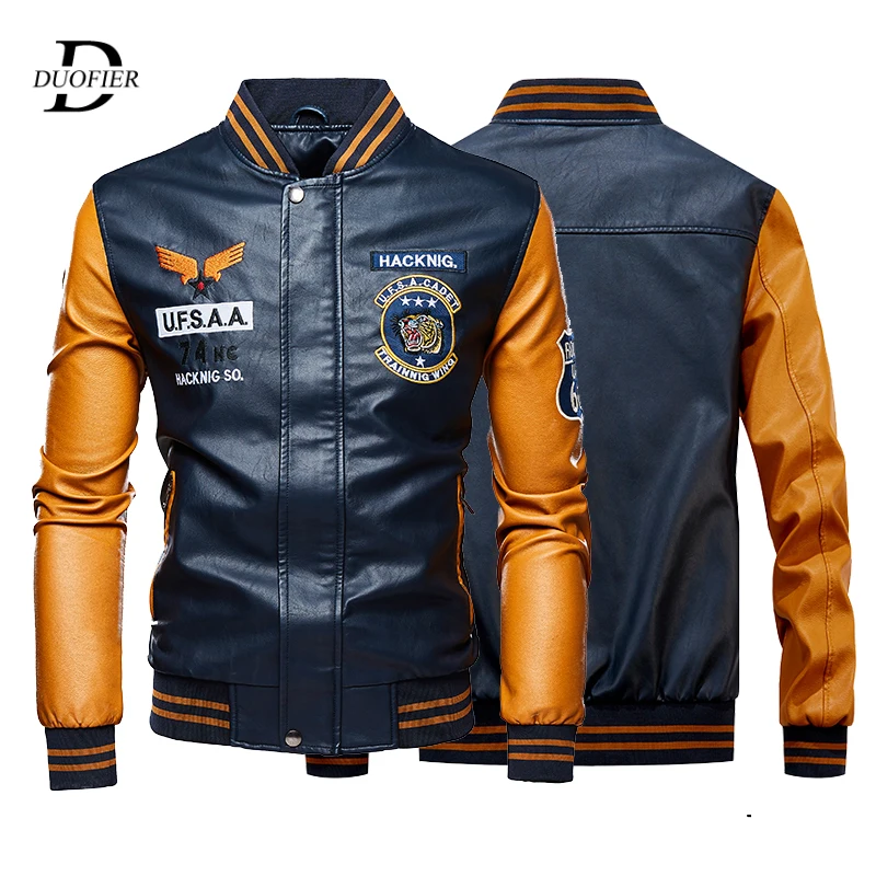Мужская кожаная куртка-бомбер, байкерская куртка-пилот из искусственной кожи, куртка-бомбер на флисе, мотоциклетная куртка черного цвета