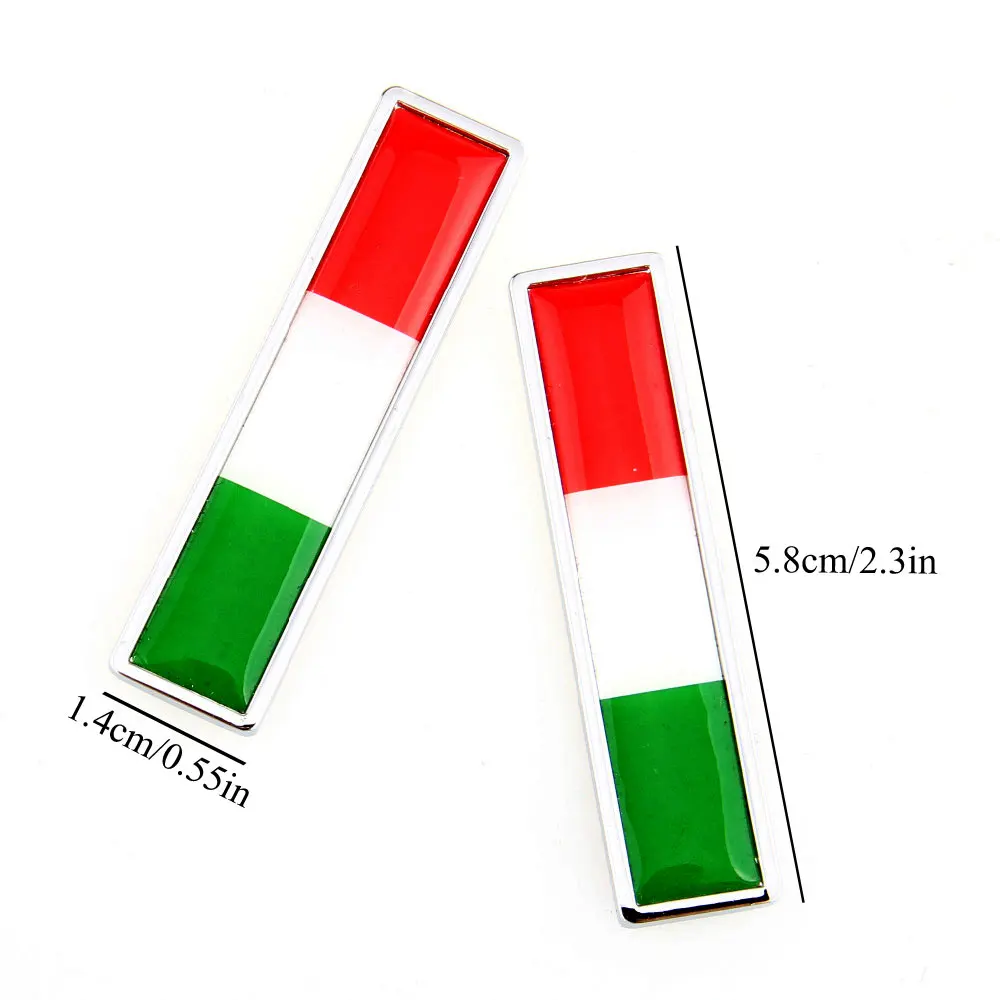 Особенности: 1. Изготовлен из сплава цинка высокой плотности, 100% новый. 2. Водонепроницаемый, не ржавеет. 3. Удобно устанавливать и снимать. 4. Дизайн национального флага-интересные аксессуары обновят ваш любимый автомобиль. Как использовать: 1. Сначала очистите место установки, чтобы быть сухими и свободными от пыли, прямой инкрустацией на поверхность. 2. Убедитесь, что масло не доступно без пыли и водяного пара, или палка не является сильной. 3. Продукт будет правильно установлен 24 часа после крепления. В этот период не перемещайте товар. При удалении продукта, пожалуйста, медленно удалите, чтобы избежать повреждения поверхности автомобиля. Подробности: > Размер: 5,7*1,5 см/2,2*0,59 дюймов > Посылка включает в себя: 1 пара = 2 шт. * металлические наклейки для автомобиля с итальянским флагом
