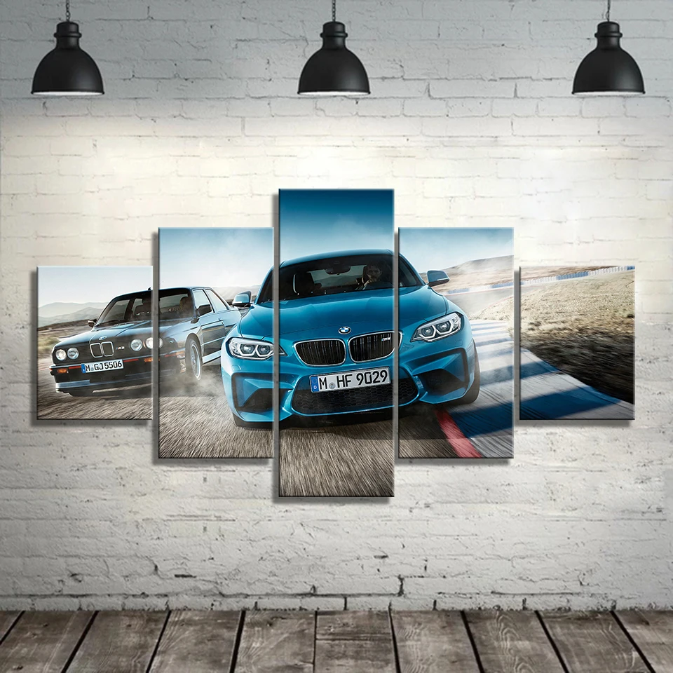 Холст Печатный плакат домашний Декор 5 шт. HD Bmw M3 синий спортивный автомобиль картины настенные художественные картины гостиная модульная рамка