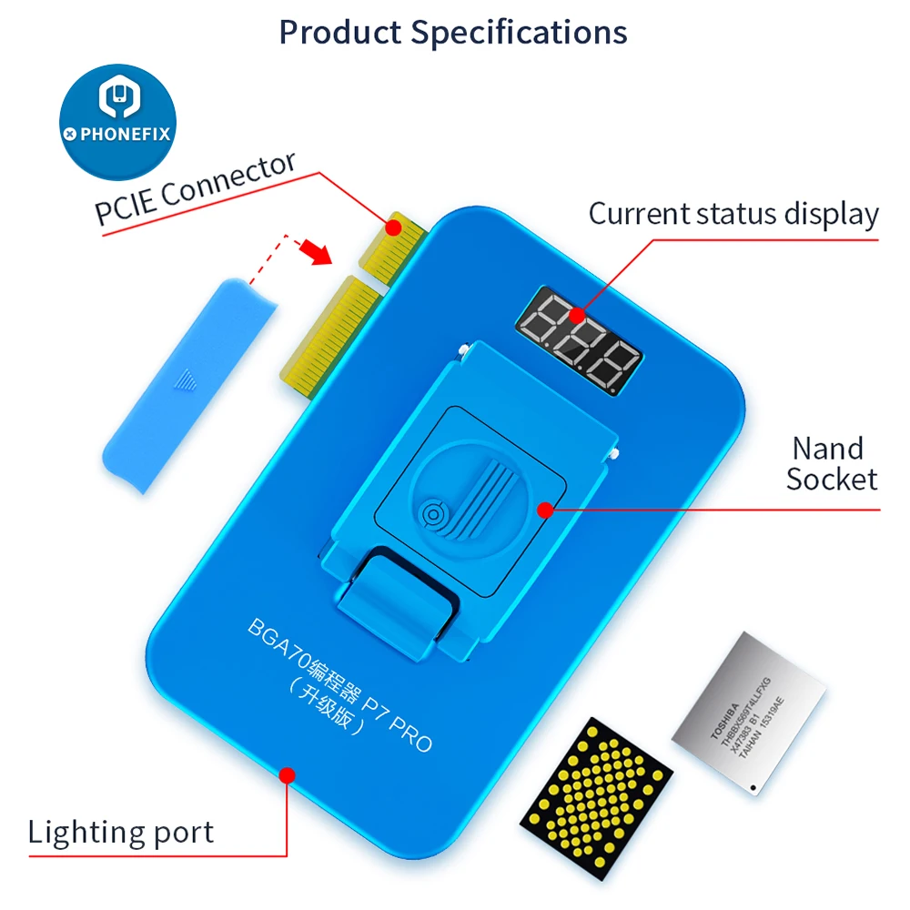 JCID P7S BGA70 ремонтный инструмент для IPhone5SE-7Plus ремонта прошивки NAND базовый чтение и запись изменения записи, JC JCID-P7S ремонтный инструмент для iPhone5SE 6G 6Plus 7G 7Plus iPad5 iPad6 iPad 7 iPad Pro BGA70 Nand Repair