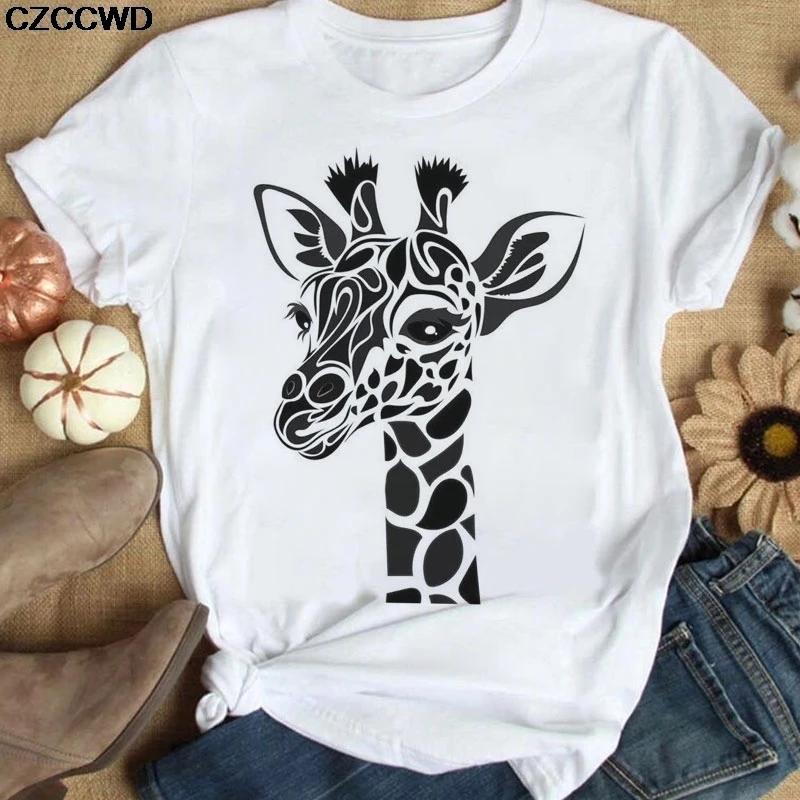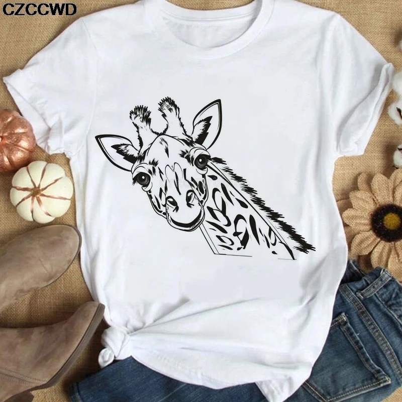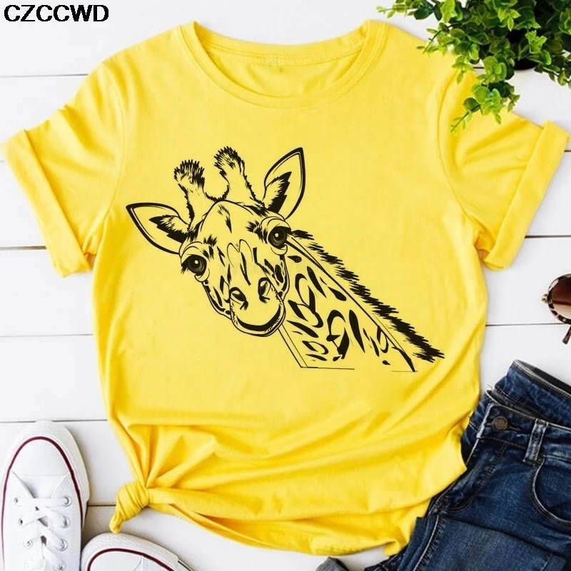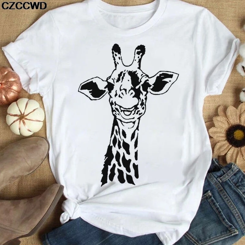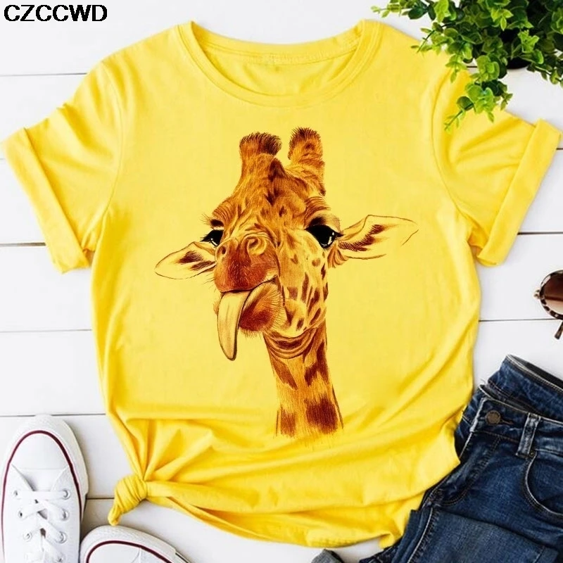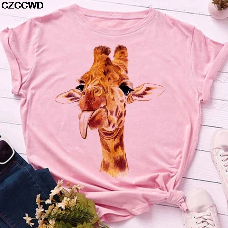 Футболка Harajuku Ullzang с изображением непослушного жирафа, женская модная розовая забавная футболка с мультяшным принтом, летняя футболка, Модный милый топ, женские футболки