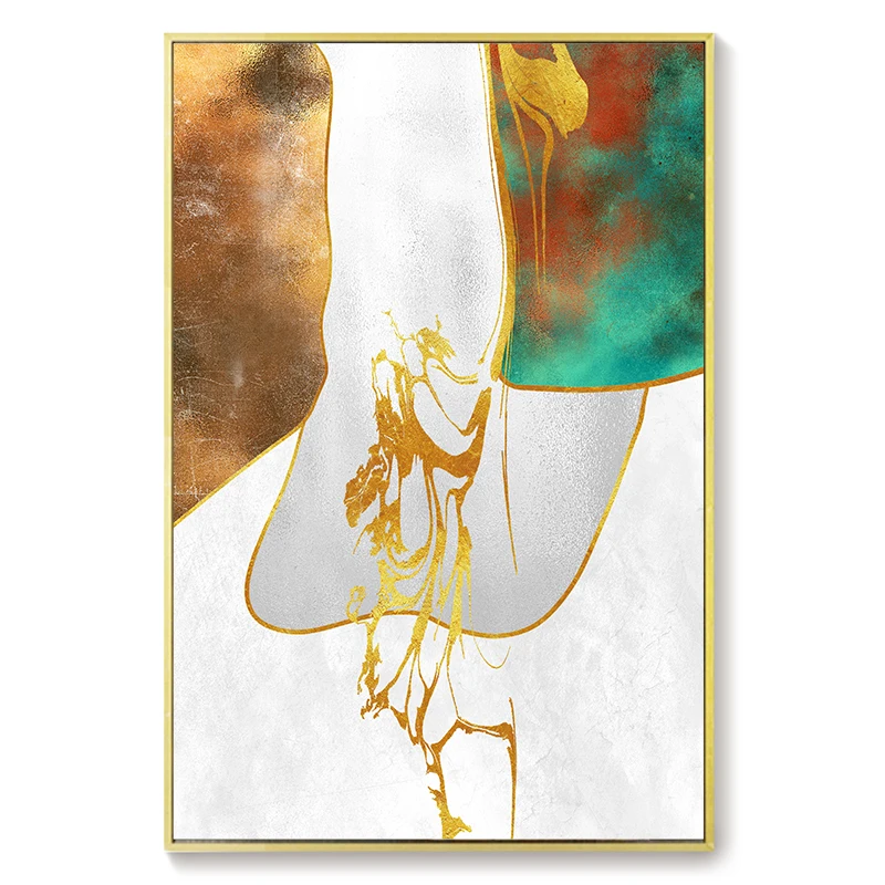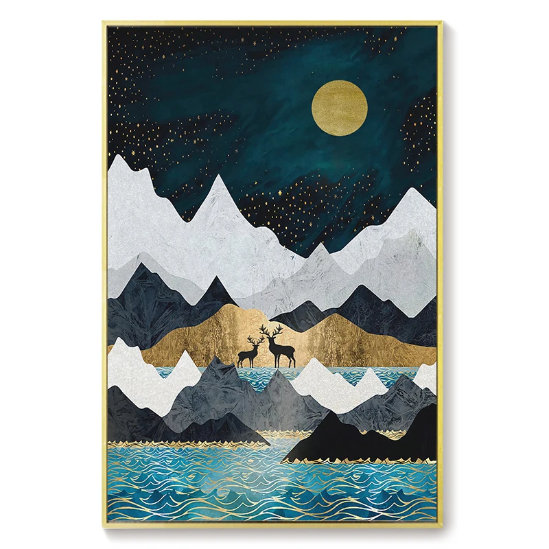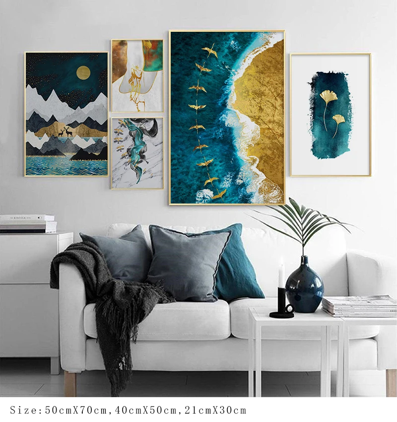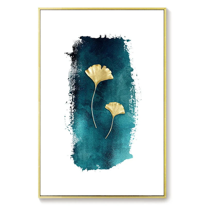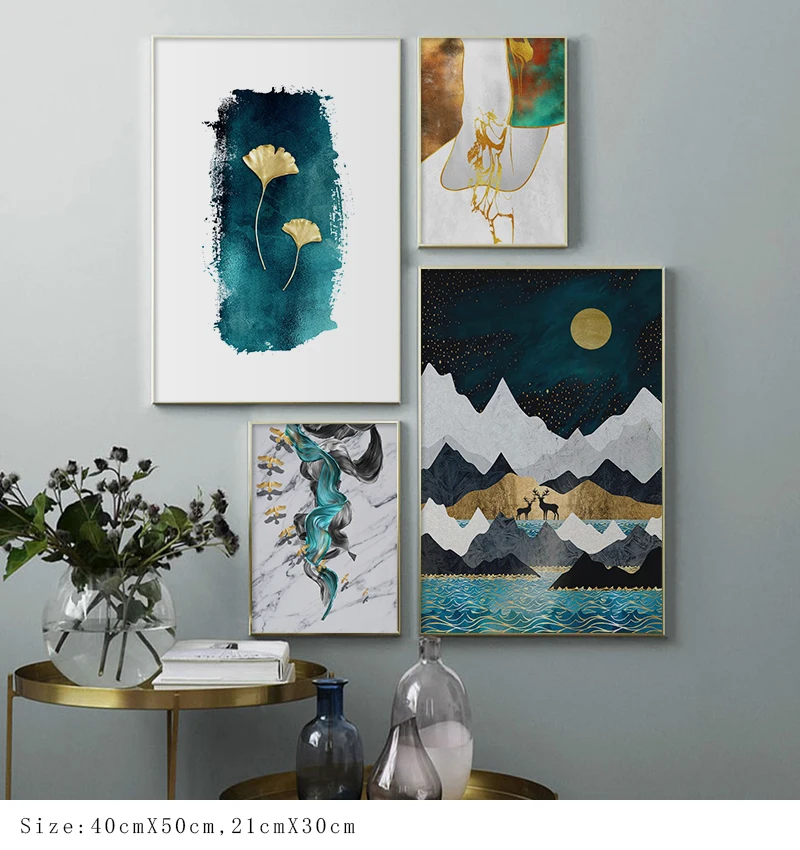 Постер с изображением золотых листьев и гор, абстрактное искусство, холст, декоративная картина в скандинавском стиле, современный декор для гостиной, дома
