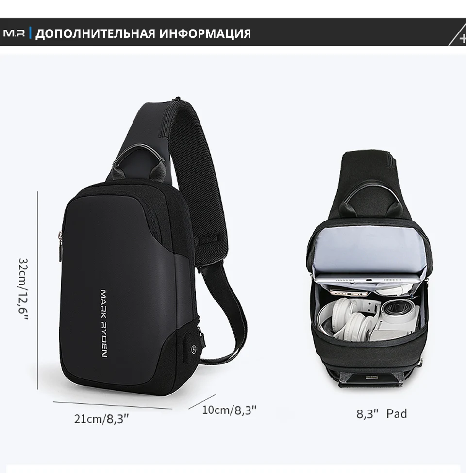 Mark Ryden MR7056 Мужская сумка-мессенджер, водонепроницаемая, с защитой от кражи, подходит для Ipad 9,7 дюйма