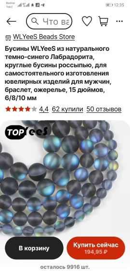 У продавца бусины заявлены как натуральный камень лабрадорит, по факту это подделка из другого материала, это не камень!!! . Для этих бусин цена слишком завышена. Сами бусины выглядят не плохо, хотя на каждой! виден соединительный шов! С продавцом не общалась.