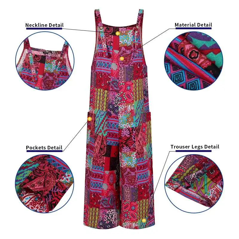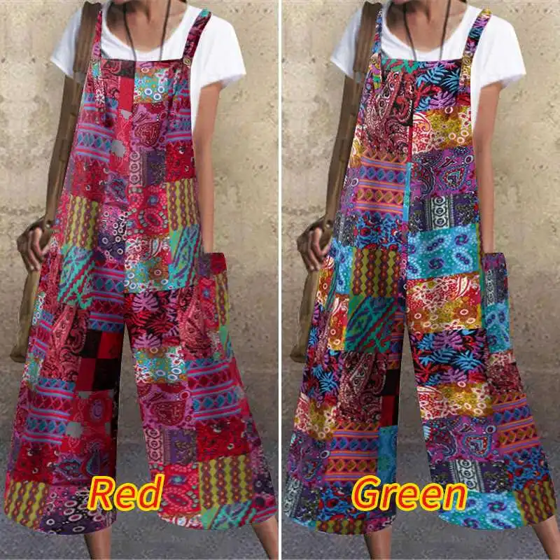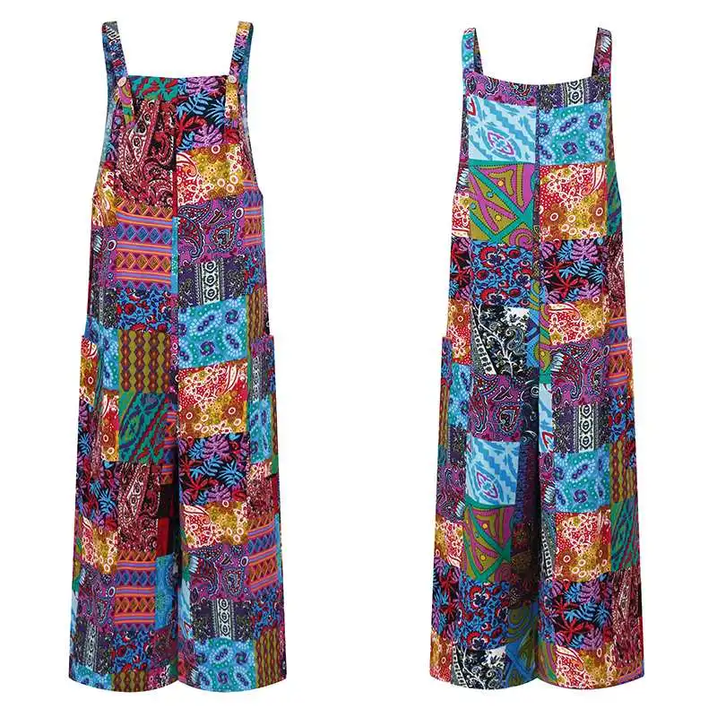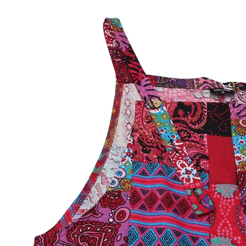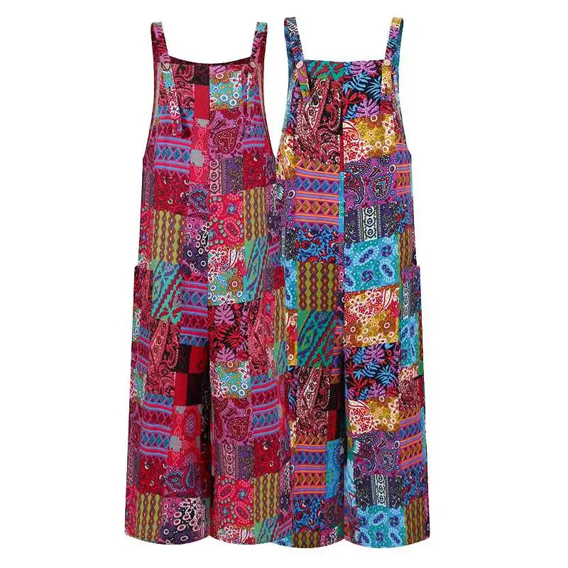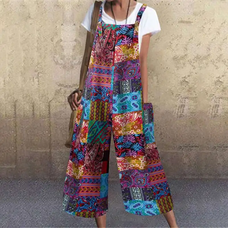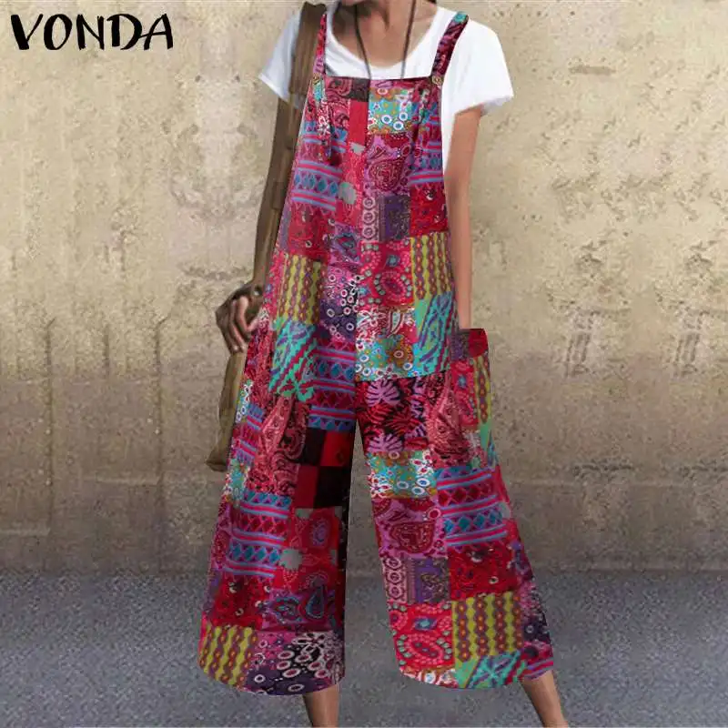 2022 женские свободные комбинезоны VONDA, пикантные повседневные Комбинезоны без рукавов с широкими штанинами, пляжные комбинезоны с винтажным принтом, женские брюки