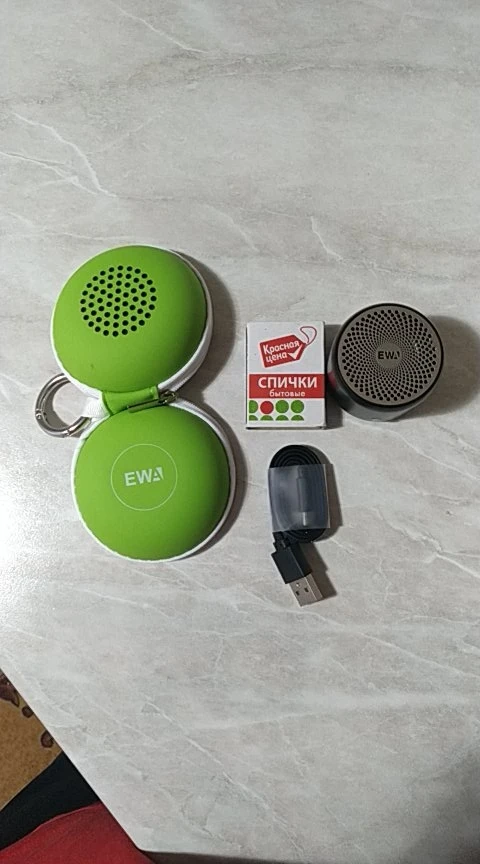 Супер гаджет- безпроводная колонка от компании EWA Удобная лёгкая , супер компактная ,с громкой мобильной акустикой, с великолепным звучанием которую очень удобно брать с собой .Гаджет имеет современный лаконичный дизайн , и всего лишь одну кнопочку для управления. Колонка имеет малый размер и легко поместится в карман или сумку. Приятное дополнение к колонке наличие футляра с перфорацией с кольцом для крепления. Полной зарядки хватает на воспроизведение на полной громкости в течении 6 часов. Звучание великолепное :))))) Я очень довольна приобретением.И что порадовало , заказала 21 .10 а доставили 30.10 в Подмосковье.