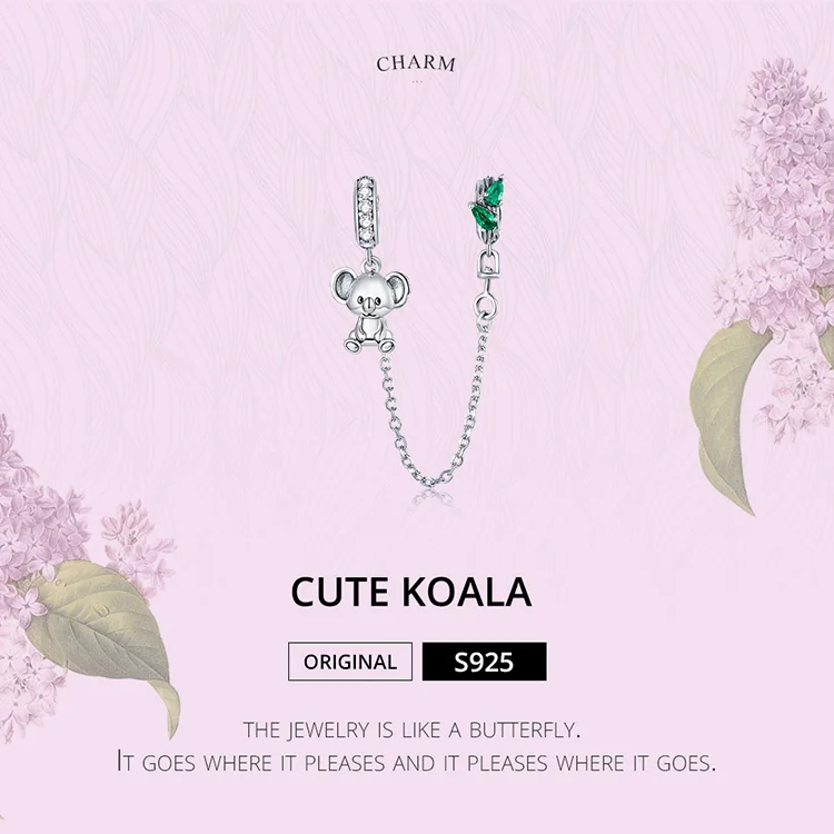 Цепочка-Шарм с коалой из серебра 925 пробы для женщин, серебряный б...
