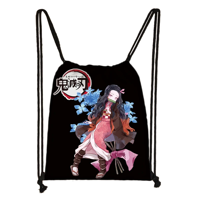 Популярная сумка на шнурке с рисунком аниме, женская школьная сумка...