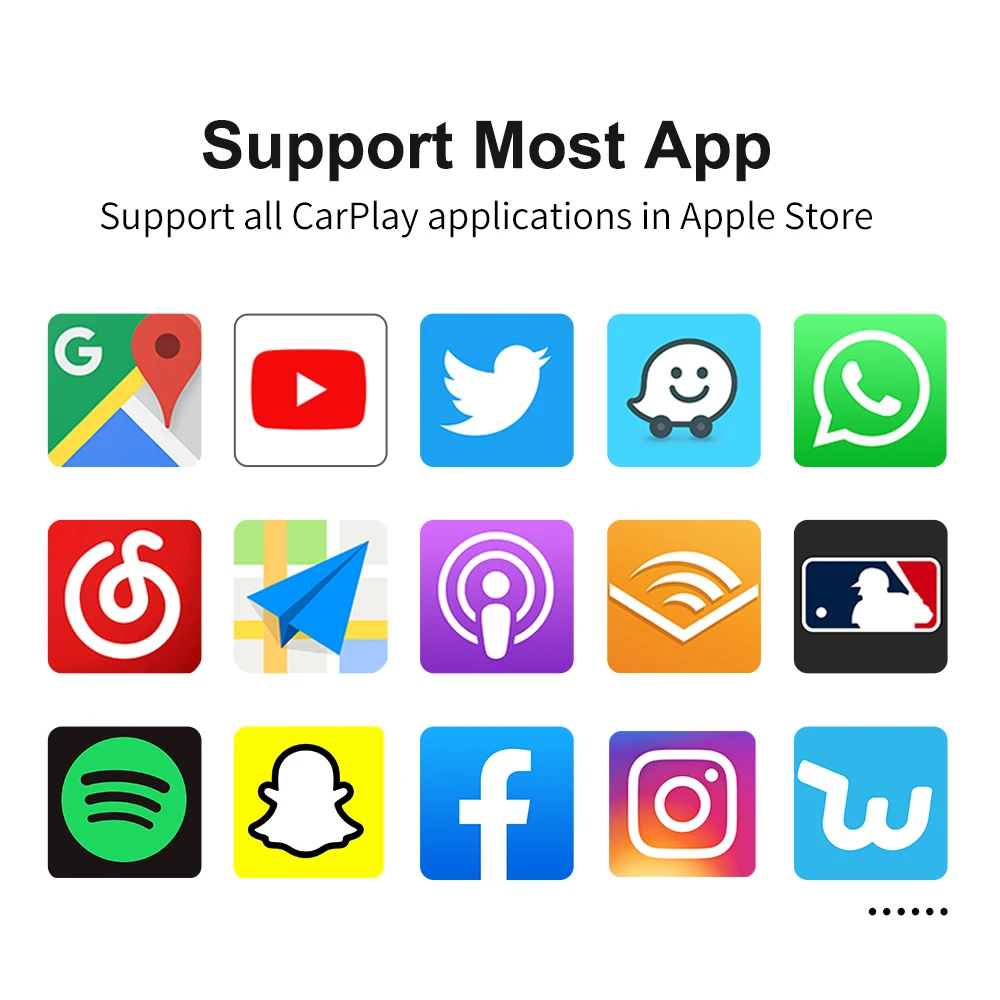 1. 【Plug and Play】 Простая установка, нет необходимости снимать автомобиль2. 【 5G процесс 】 быстрое соединение продукта.3. 【Автоматическое подключение 】 Подключите автомобиль и подключите, когда вы входите в машину.4. 【Онлайн upgrade】 продукт может быть отремонтирован через онлайн-версию обновления.5. 【 многократное использование 】 Поддержка нескольких мобильных телефонов для переключения на использование....==========================★【Беспроводная связь Bluetooth Сопряжение, Wi-Fi передача. (Можно использовать только беспроводную версию)★【Проводной кабель 】 сначала выключите WIFI и подключите через сетевой кабель (вы также можете зарядить телефон через сетевой кабель)★【Android Auto】 поддерживает только проводное соединение и поддерживает одновременную зарядку★【Mirrorlink】 поддерживает телефоны iPhone и Android, вы можете использовать любое приложение на вашем телефоне, например, смотреть YouTube, Netflix и т. Д....==========================✔【Оригинальное управление автомобилем 】 поддержка оригинальной автомобильной кнопки/управления ручкой/управления рулевым колесом, по-прежнему оригинальный стиль вождения.✔【Голосовое управление 】 вам нужно только сказать «Эй, Сири...», и ваш автомобиль узнает вас лучше.✔【EQ Регулировка 】 лучшее качество звука. Свободно Выбирайте свой любимый стиль (поп, рок, мягкий, стандартный...)✔【Music】 воспроизведение Spotify, Apple Music, Amazon и других аудио через оригинальные медиа, и некоторые приложения могут отображать текст.✔【Map】 GPS навигационные приложения, Google Maps, Waze и Apple Maps доступны, информация о дорожном движении в реальном времени.✔【Больше приложений, таких как WhatsApps, книги, подкоты и т. Д....