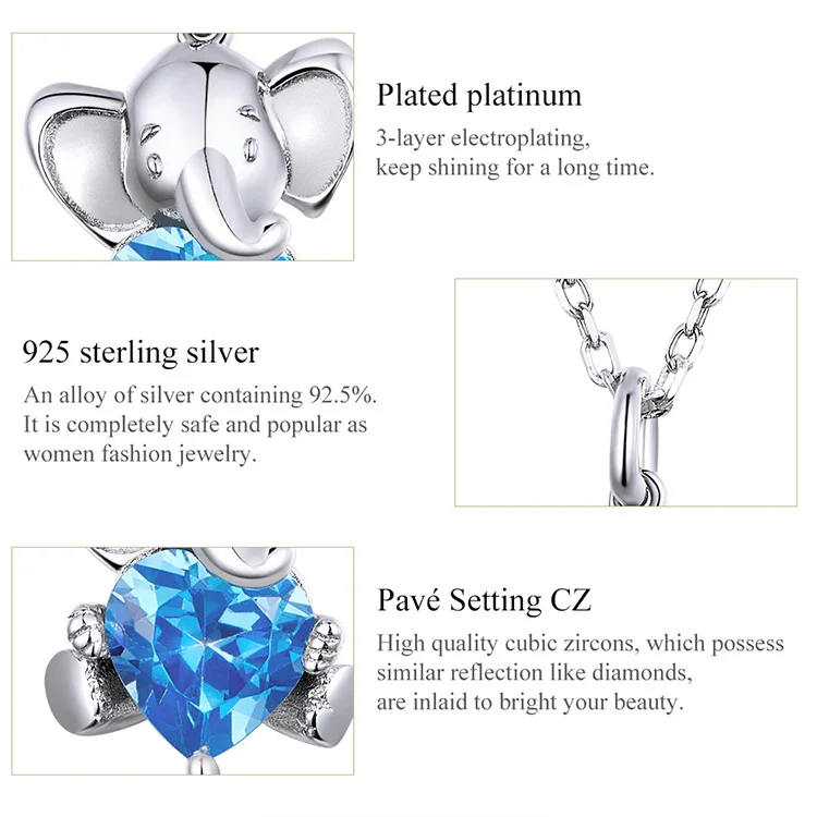 Женское ожерелье с кулоном в виде слона bamoer Ocean Blue Heart, се...