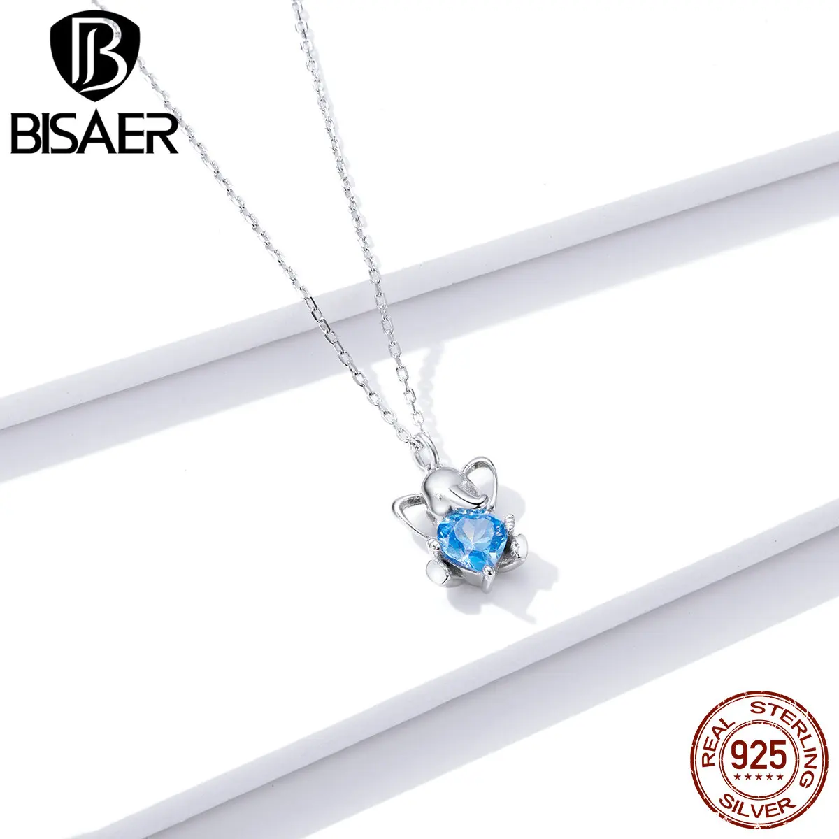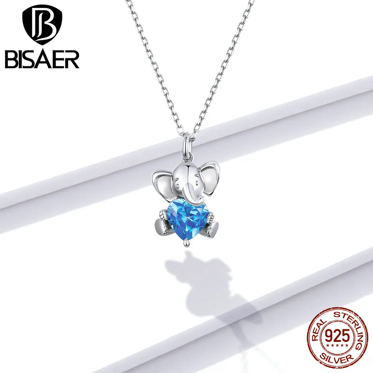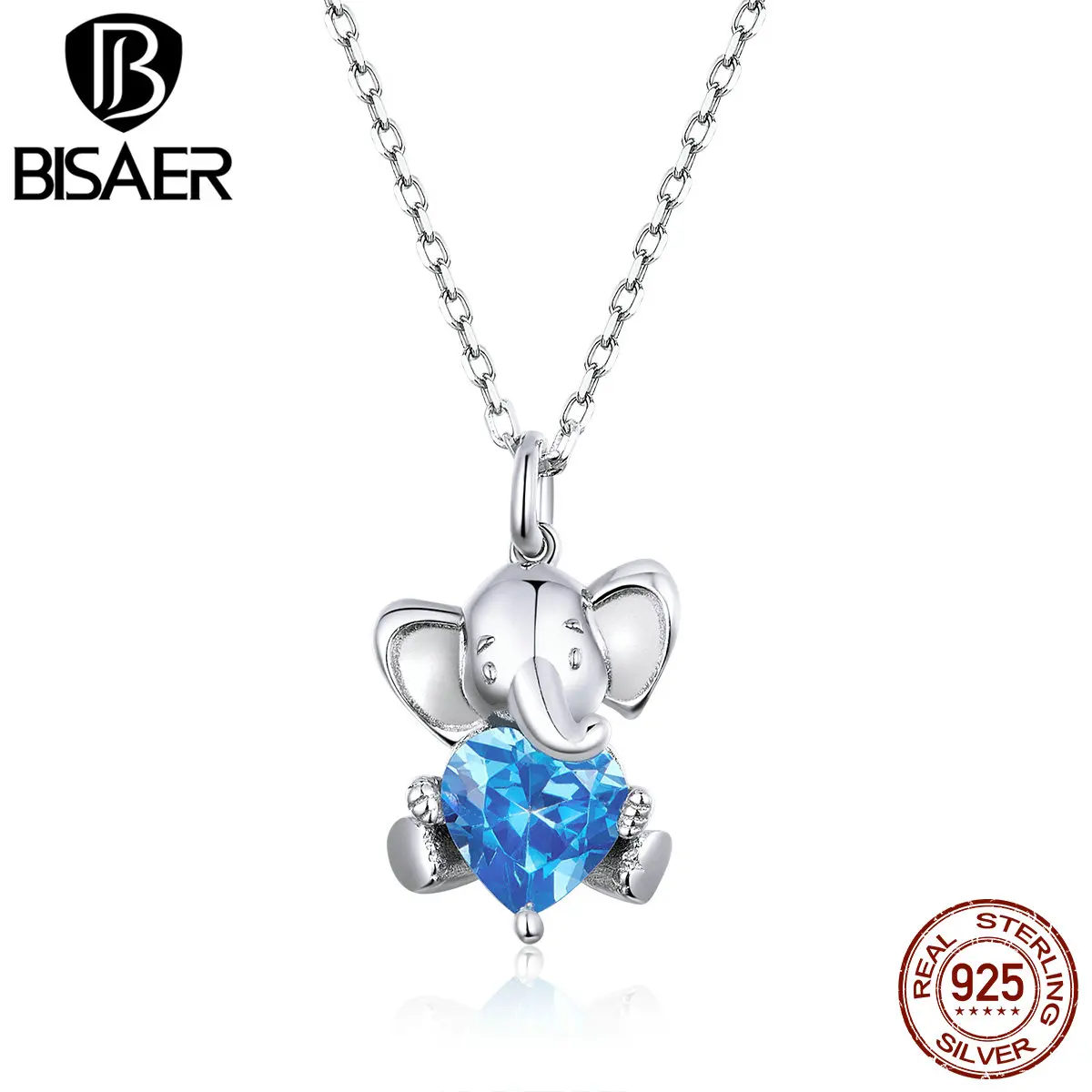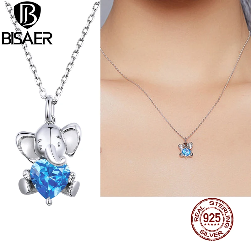 Женское Ожерелье с милым слоном BISAER, регулируемое длинное ожерелье из стерлингового серебра 925 пробы с синим цирконием 45 см, S925, EFN180