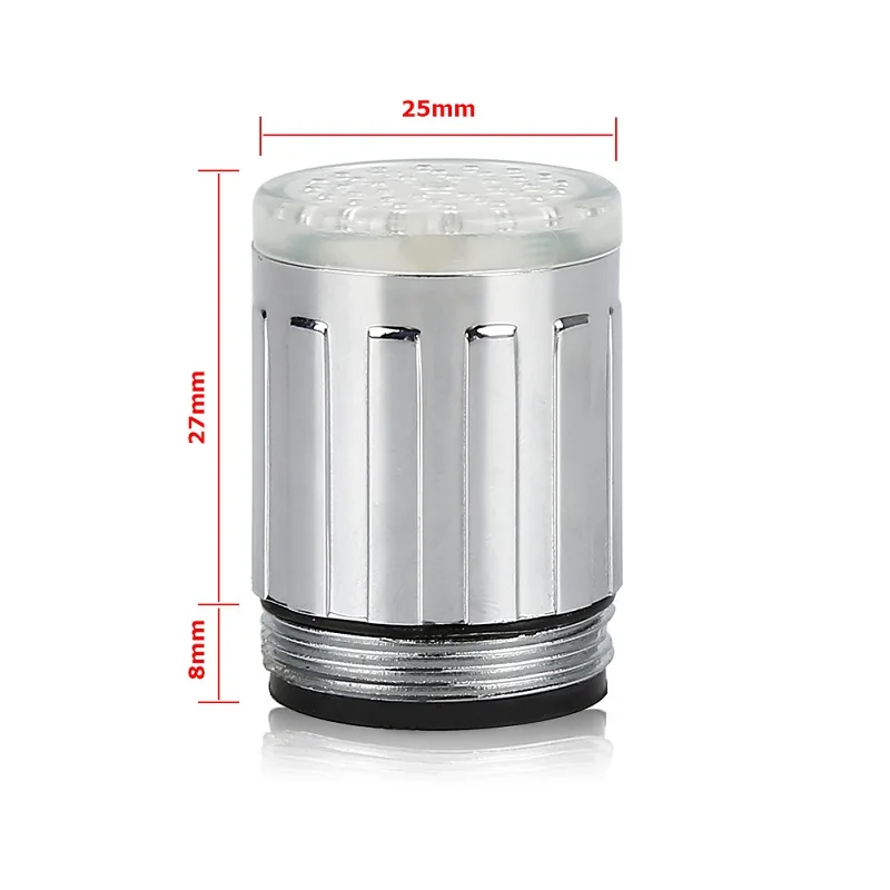 Это маленькое устройство подходит для большинства кранов и загорается набором светодиодов при включении крана.