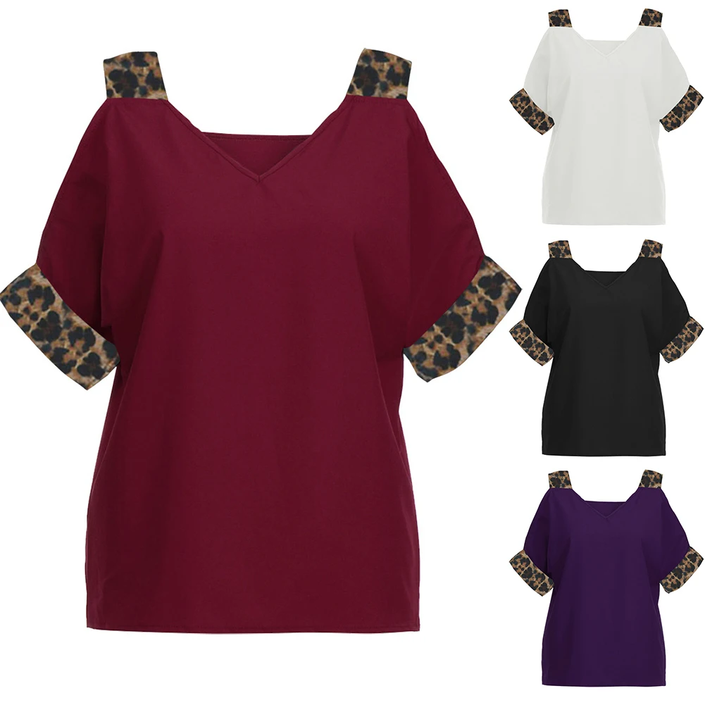 Повседневная Женская модная короткая футболка с рукавом до локтя, с V-образным вырезом и леопардовым принтом, 2020 размера плюс