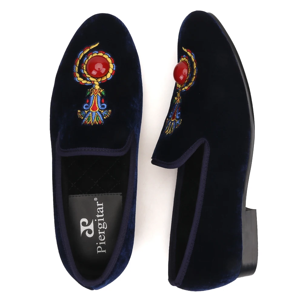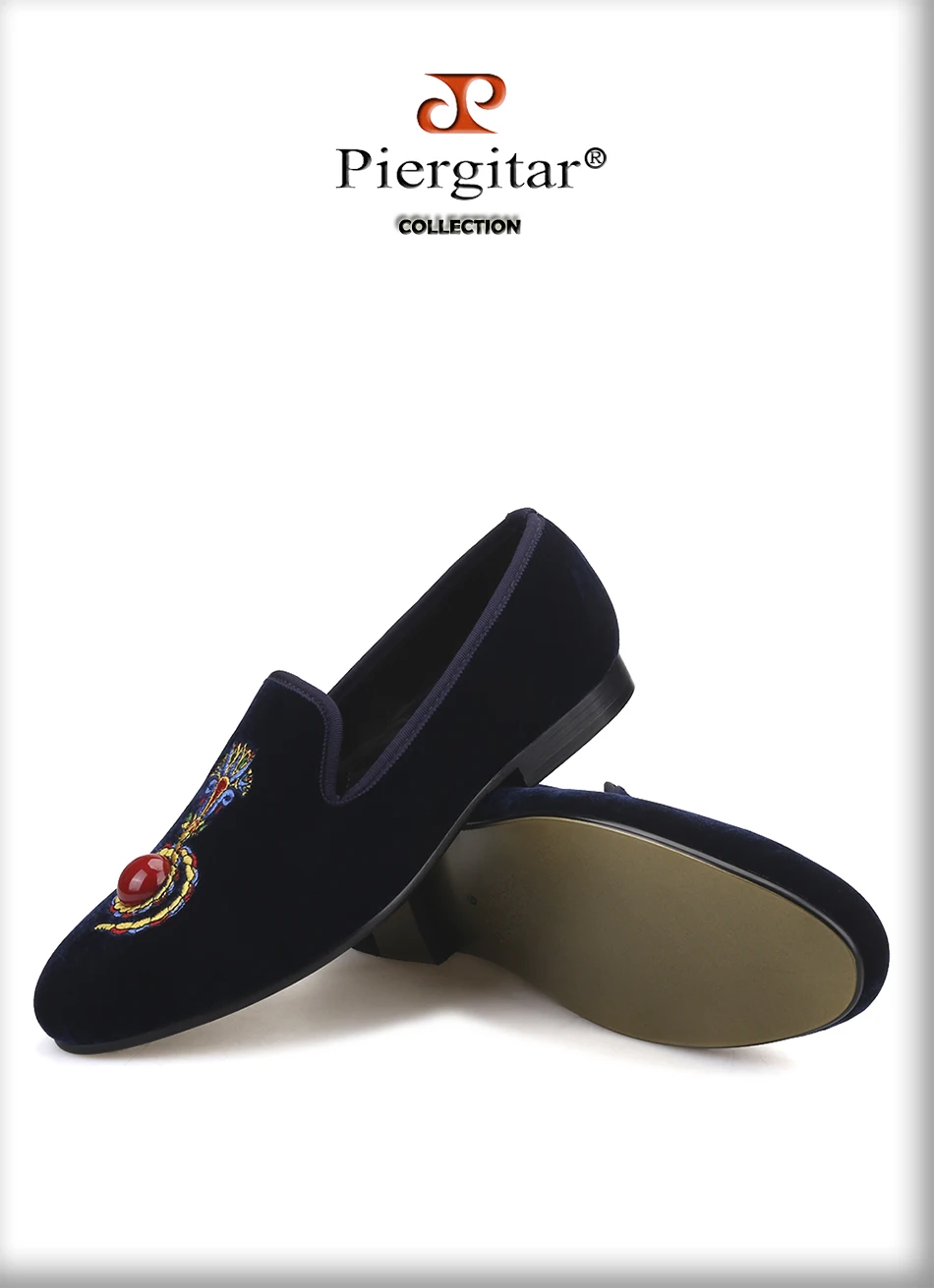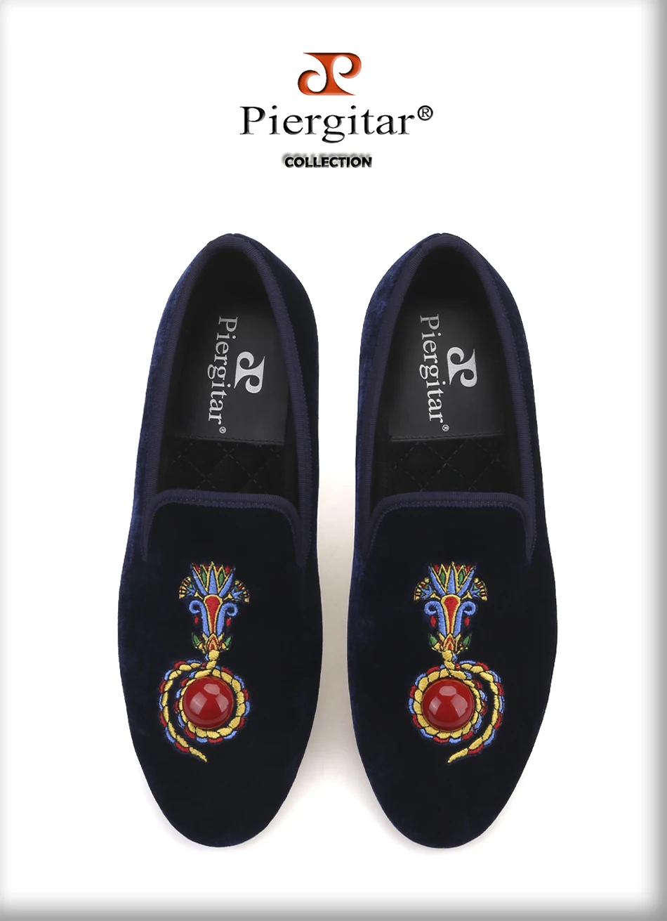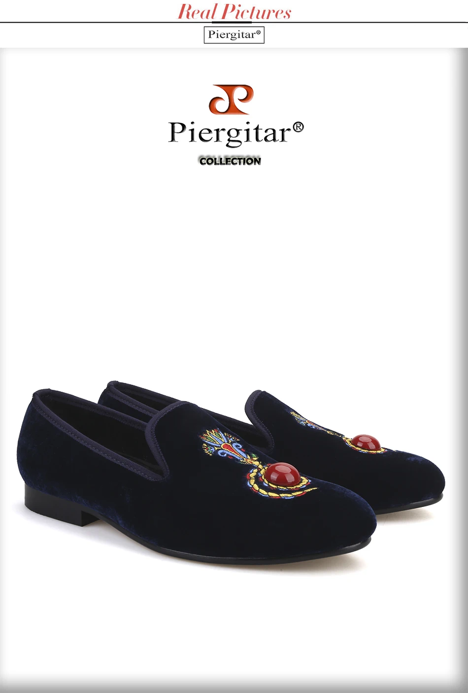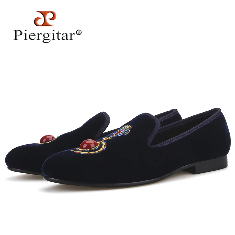 Мужские бархатные Мокасины Piergitar, темно-синие туфли ручной работы с Африканской вышивкой, для вечеринок и свадеб, 2020