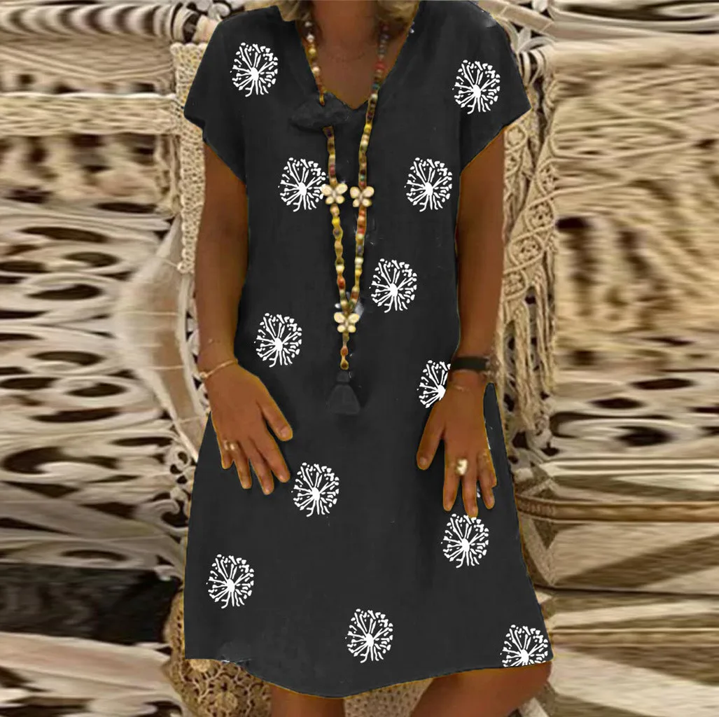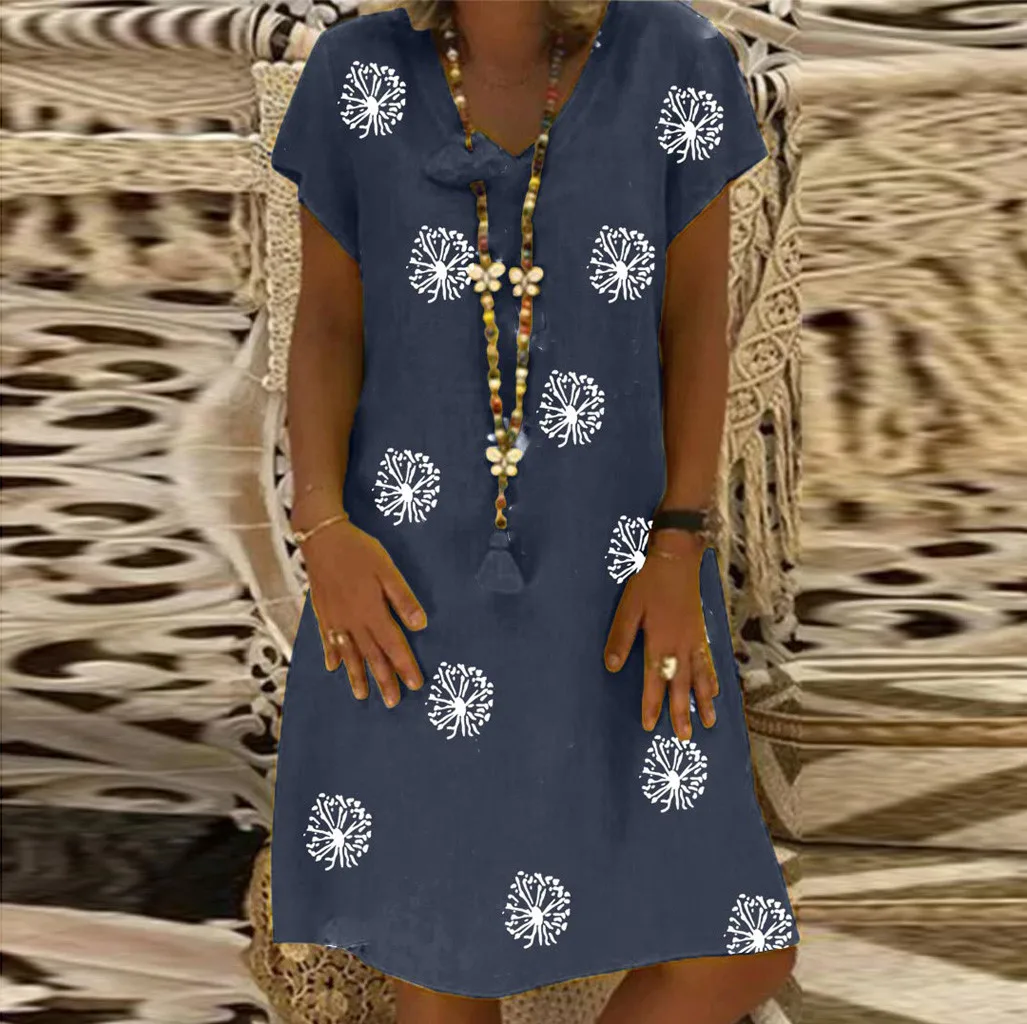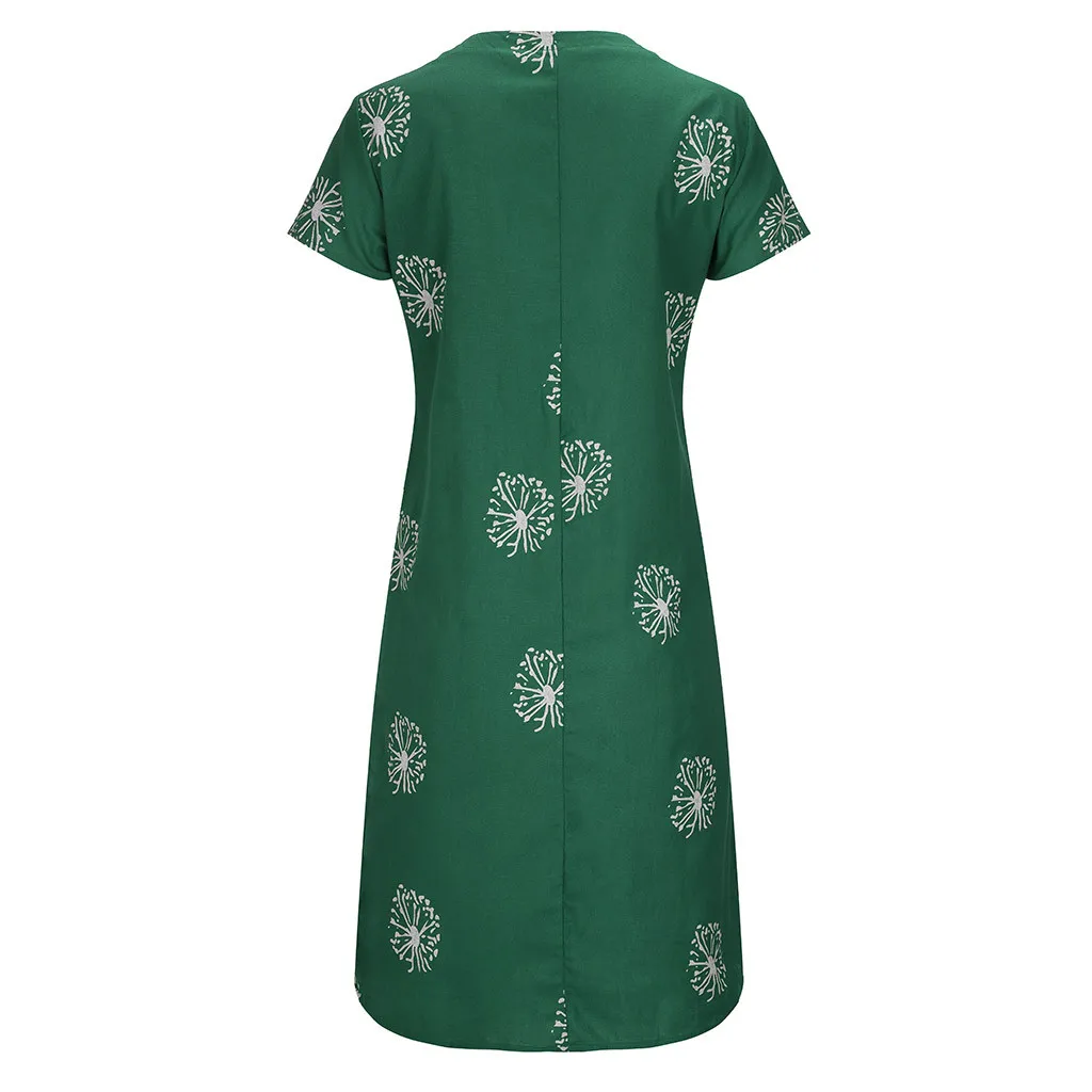 Женское платье из хлопка и льна #35, повседневное свободное платье мини с цветочным принтом и V-образным вырезом, с коротким рукавом, размера плюс