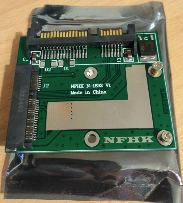 Адаптер mSATA на SATA прибыл без какой-либо защиты только в маленьком полиэтиленовом пакете. Изначально работает, SSD может быть обнаружен и доступен. Однако, как только большая нагрузка на чтение/запись будет отправлена на устройство, он будет невосприимчивым, он будет полностью потерян из биос или из узла. Очень жарко. Перезагрузка сервера не поможет. Но SSD работает нормально без адаптера на другом компьютере.