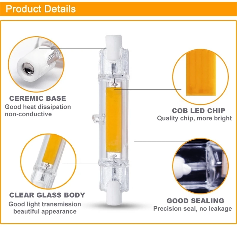 Название продукта: стеклянный COB R7S светодиодный светильник