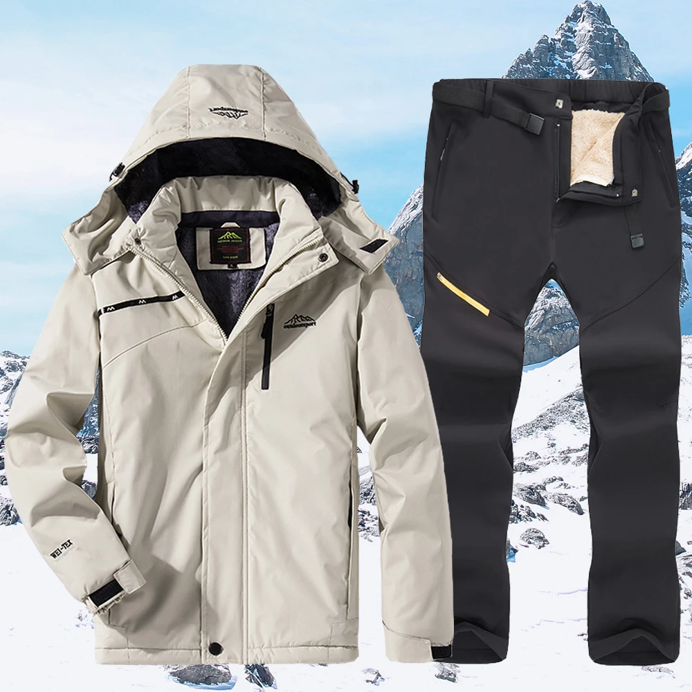 Новый лыжный костюм для мужчин, зимний костюм для катания на лыжах и сноуборде, теплый, водонепроницаемый, ветрозащитный, куртка и штаны на флисе для сноуборда, мужской зимний костюм