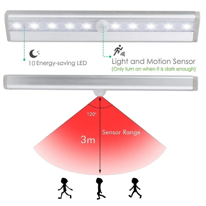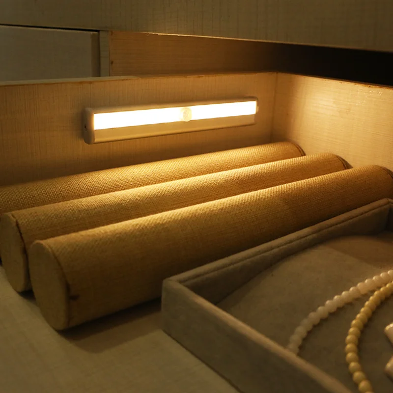 Беспроводной светодиодный светильник CANSHUO, настенный светильник с датчиком движения PIR, 10 Светодиодный светильник с жесткой полоской, кухонный шкаф, батарейный светильник