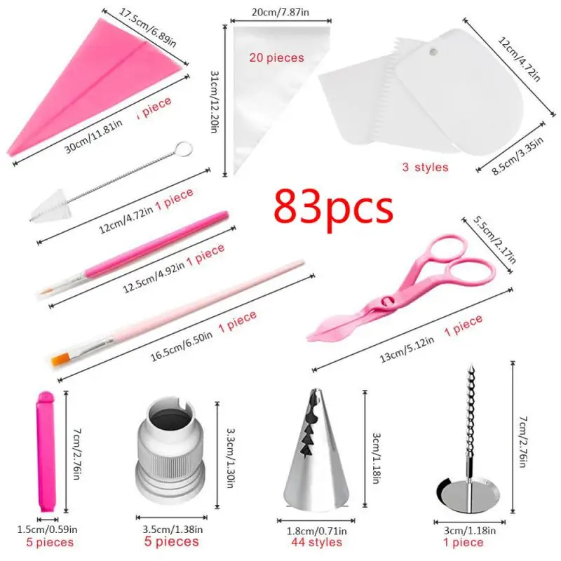 72/82/83 шт./набор, набор инструментов Комплект для украшения торта, насадки для мешков для глазури наконечники для выпечки