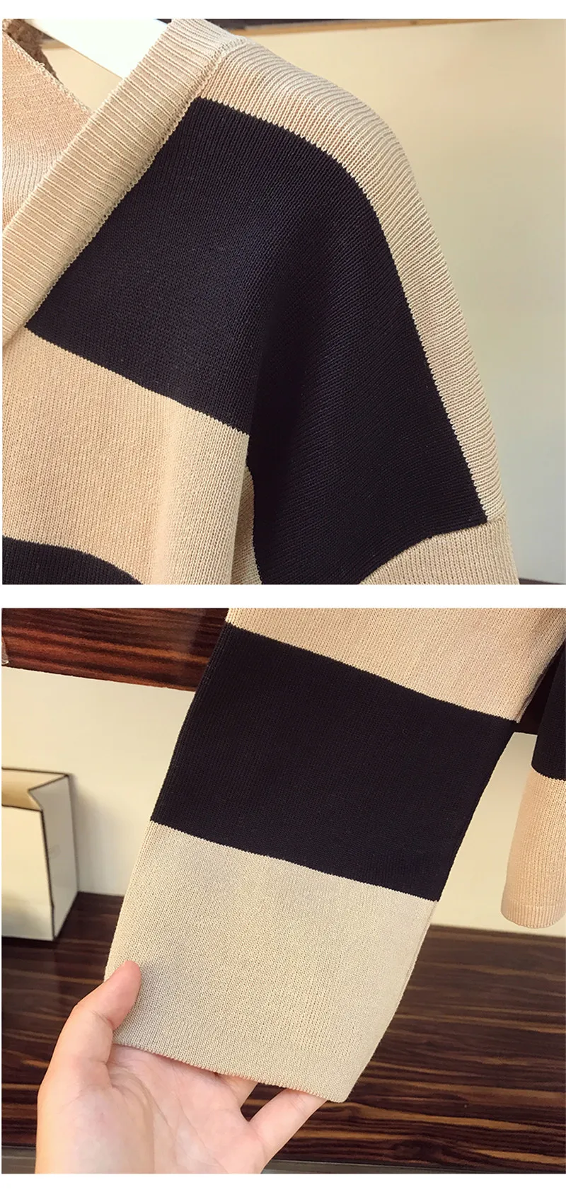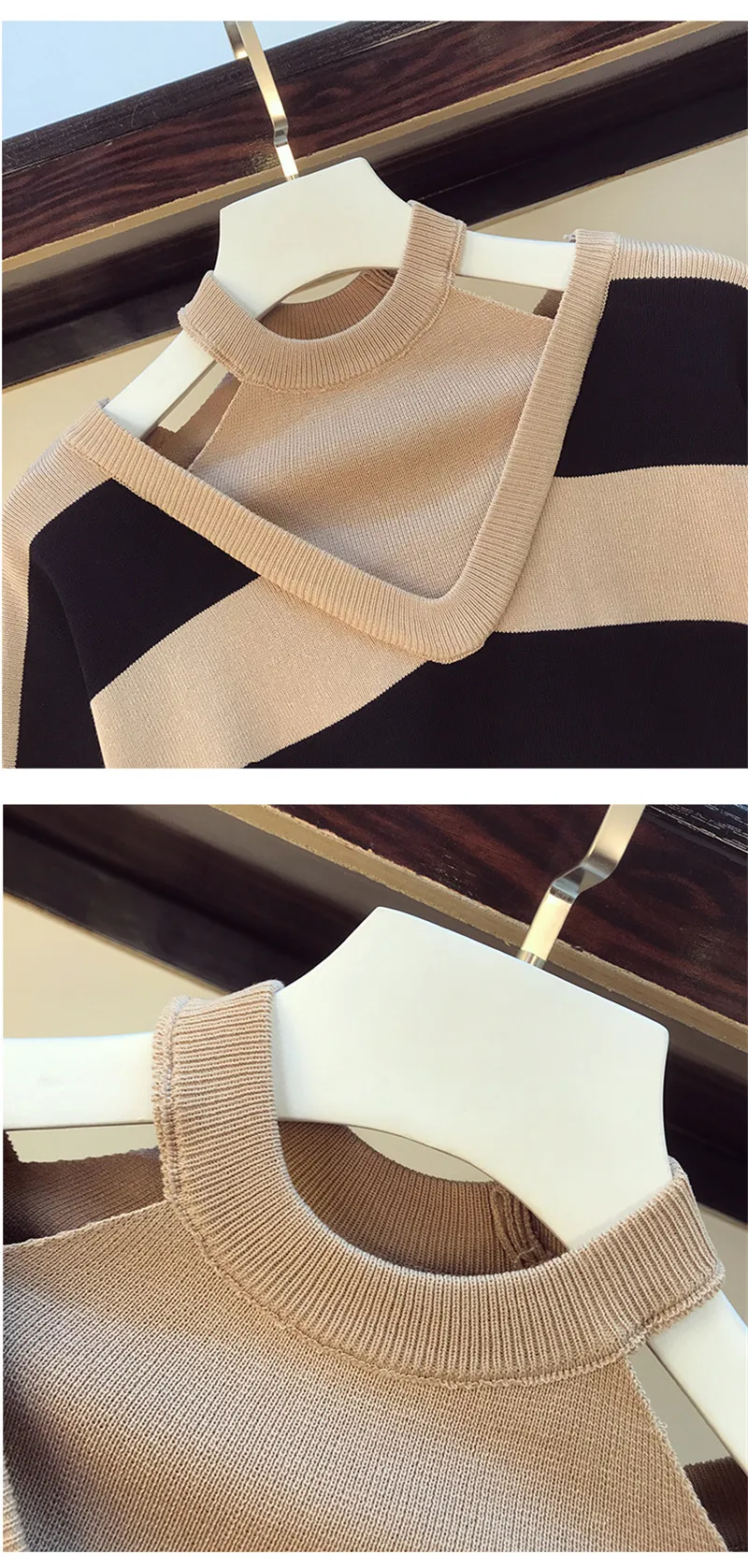Женский трикотажный комплект из двух предметов, свитер в полоску с лямкой на шее и брюки с широкими штанинами и эластичным поясом, Размеры S-XL