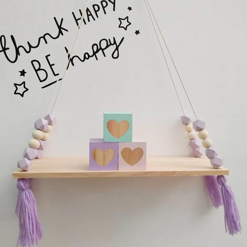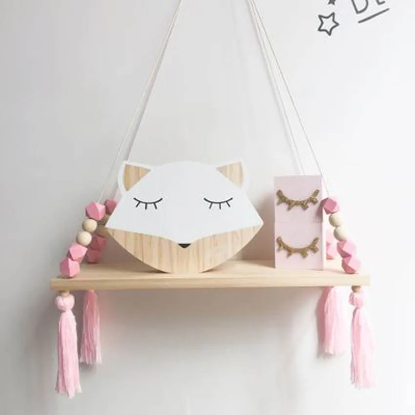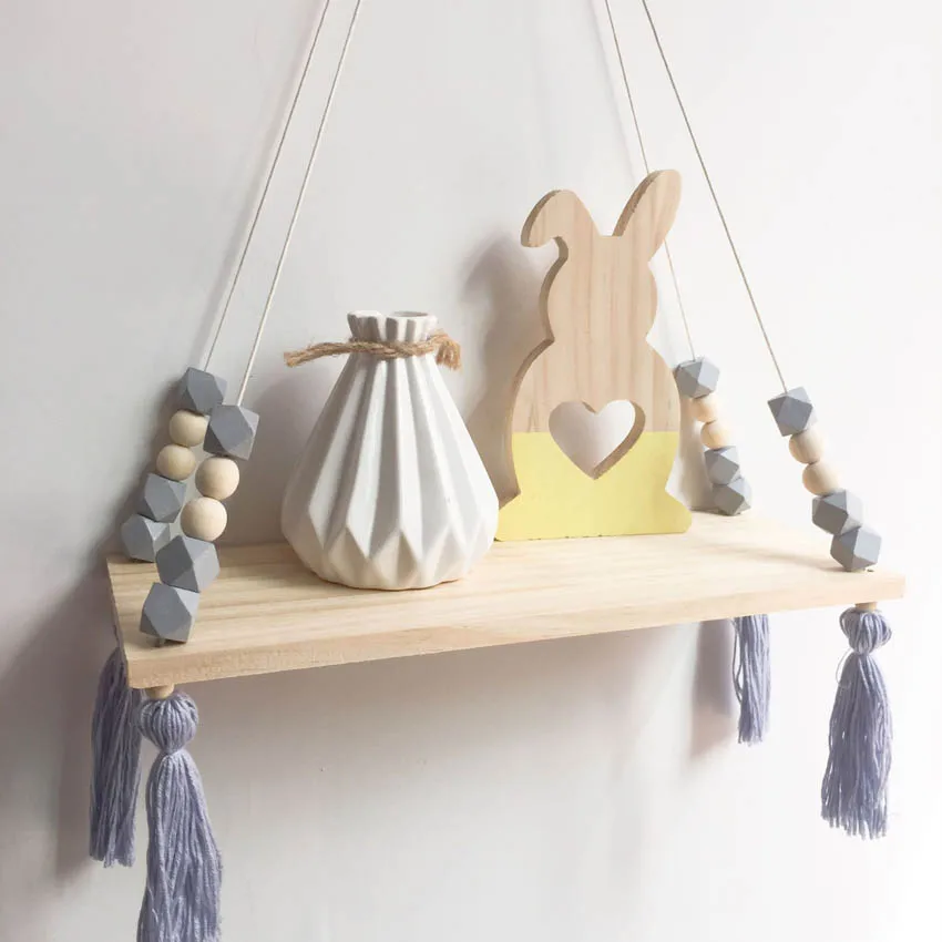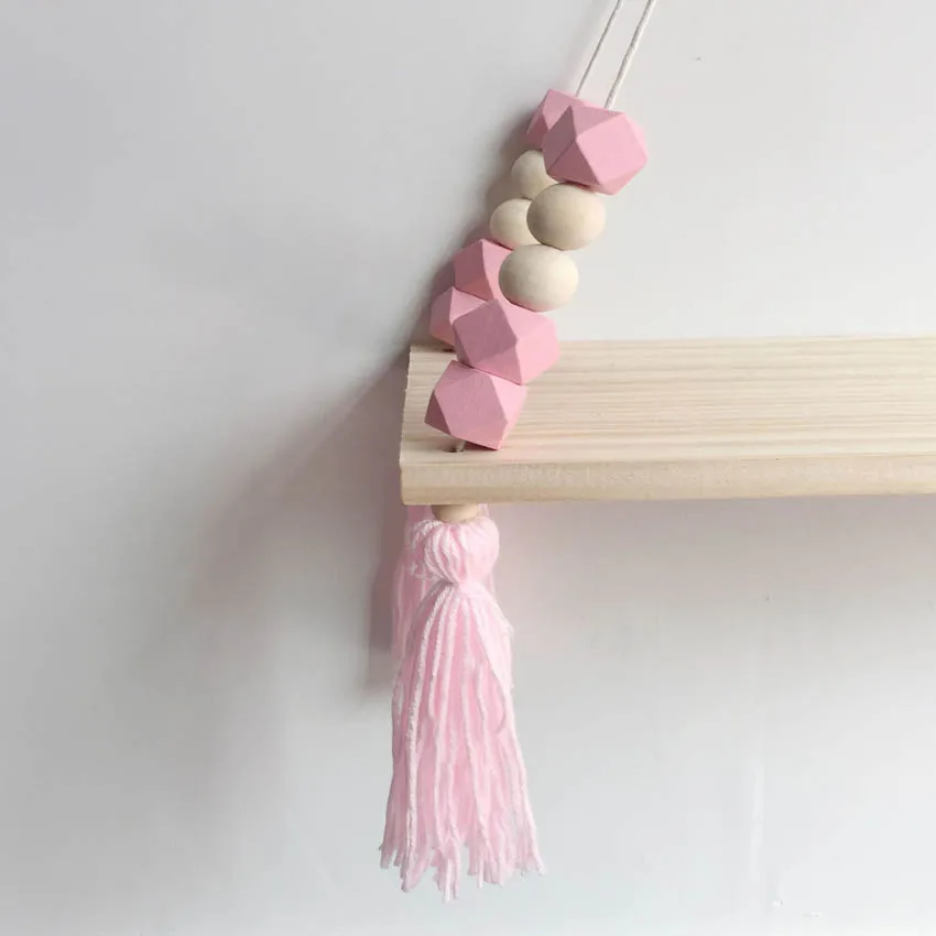 Лидер продаж, настенная полка для спальни, оригинальная полка для хранения из деревянных бусин сделай сам, оформление стен детской комнаты