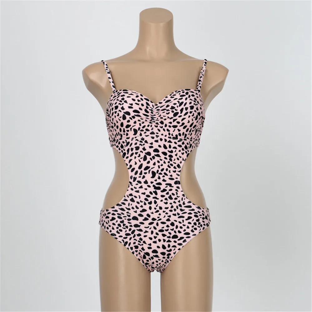 Сексуальный леопардовый Цельный купальник, женская одежда для плавания с принтом, монокини бандо, купальник с пуш-ап и вырезами, трикини, купальный костюм с открытой спиной