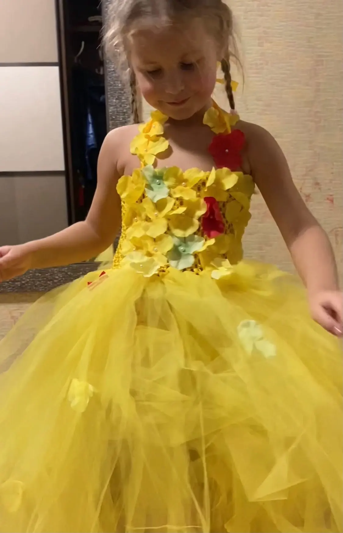Доставка до Саратова 2 недели, продавец очень быстро отправил платье. Платье просто шикарное. в действительности даже лучше чем на фото. Сверху платья резинка, спереди украшено цветами, снизу платья ленты. За счёт них платье получается очень объемным снизу, просто платье принцессы. Единственное конечно снизу хочется подьюбника, ну или можно вниз одевать юбочку. Я отдала в ателье, сделала подьюбник из подкладочного материала. Платье вообще стало смотреться восхитительно, и не нужно переживать что будет видно нижнее белье. Платье при нашем росте 107 см в пол. Платье к покупке рекомендую. Юбка насыщенного синего цвета