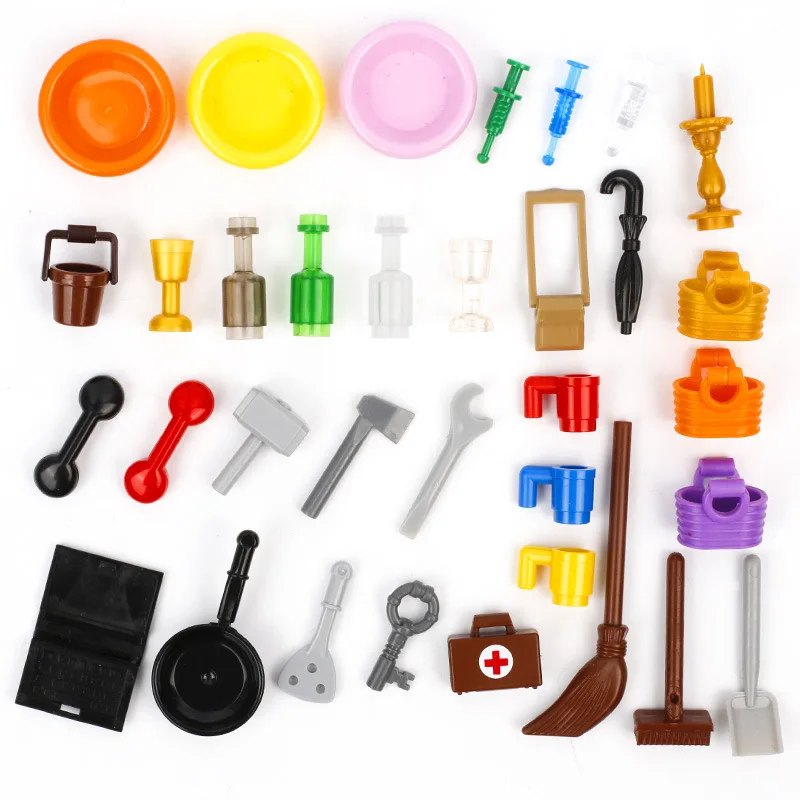 Аксессуары MOC, городской зонтик, набор инструментов для еды, чашка, корзина для овощей, строительные блоки, игрушки для детей, подарки для детей, детали сделай сам