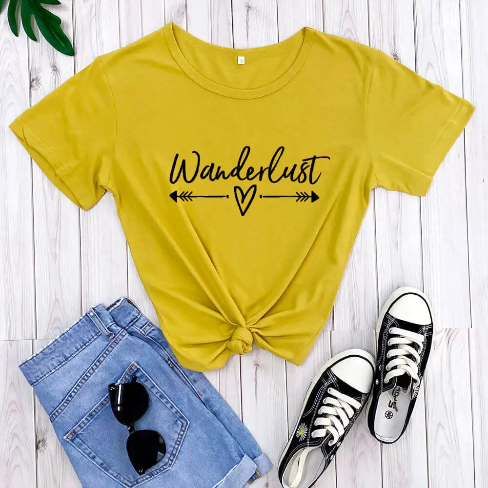 Wanderlust, Новое поступление 2020, летняя повседневная смешная футболка из 100% хлопка, семейная футболка, рубашки для путешествий вдохновляющие футболки