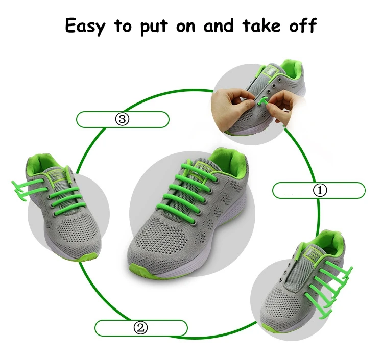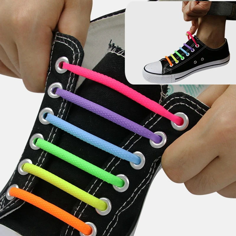 Силиконовые шнурки, круглые эластичные для обуви, без завязывания, 16 шт.компл., для любителей спорта, для детей и взрослых