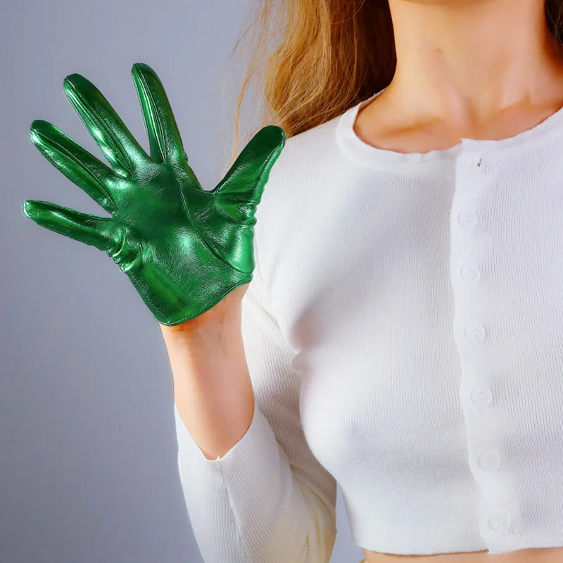 Латексные короткие перчатки из искусственной блестящей лакированной кожи, 6 дюймов, 16 м, электрические, зеленые, длинные, женские кожаные перчатки WPU257