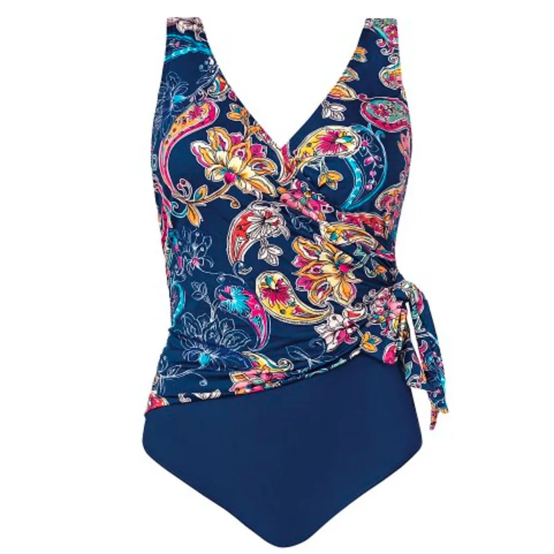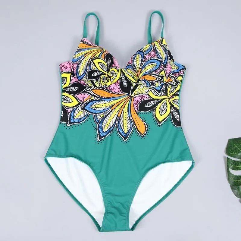 Цветочный цельный большой купальник, закрытый женский купальник с эффектом пуш-ап, женский купальный костюм, женский пляжный купальник для бассейна
