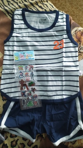 Хороший костюм за свою цену! Торчит пара ниток, не критично, швы хорошие, бирки снаружив Волгоград доставка быстрая, с продавцом не общались, положил в подарок наклейки, мило, приятно! спасибо, будем заказывать ещё на сл.лето