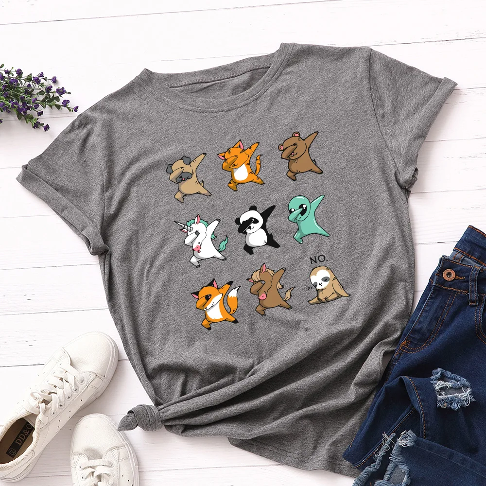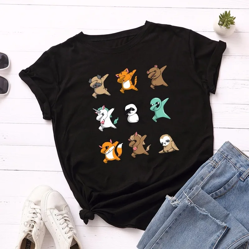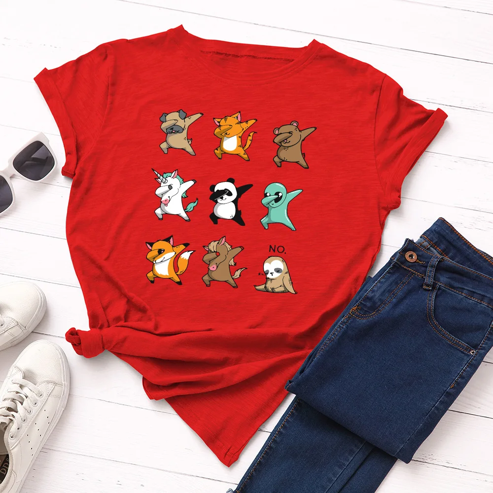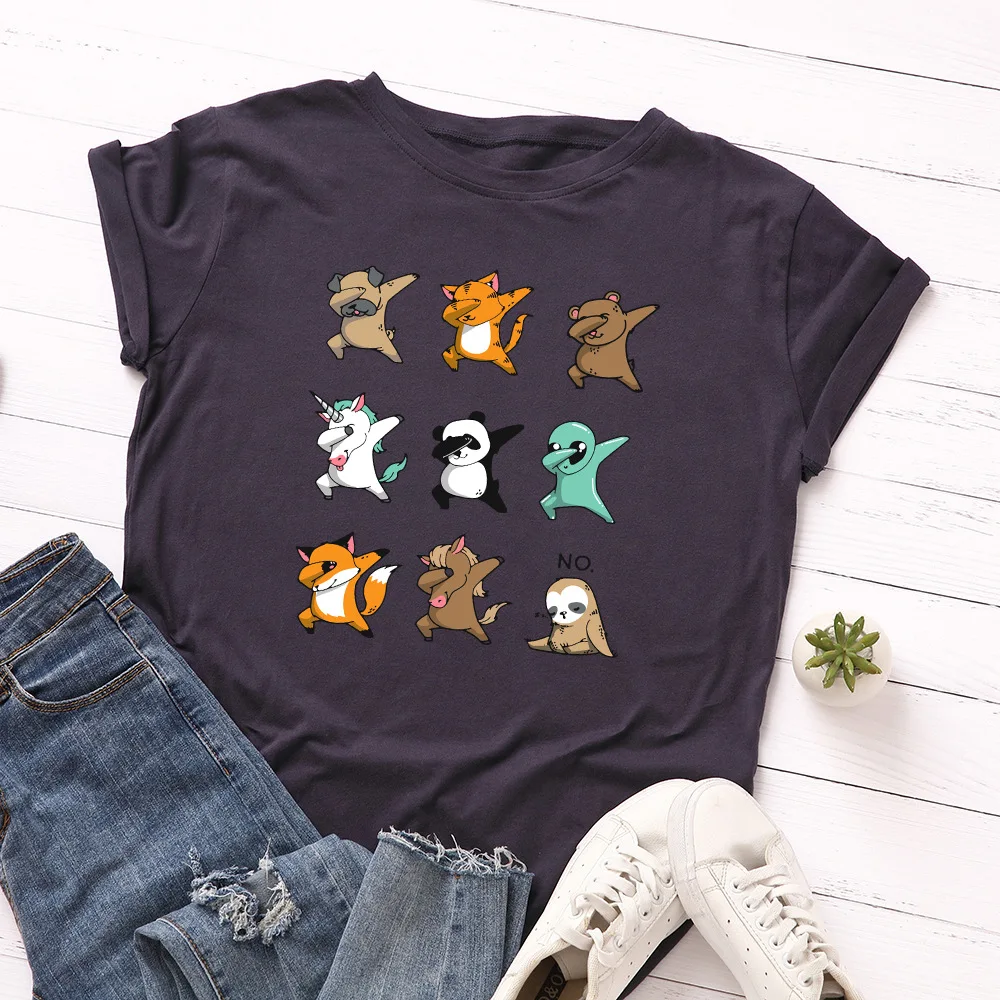 Женская футболка JCGO, летняя универсальная хлопковая футболка с коротким рукавом, 4XL, 5XL, с милым принтом танцующих животных, повседневная женская футболка с круглым вырезом