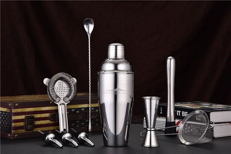 Высококачественный инструмент для коктейлей Kit-набор для барменов включает в себя 750 мл шейкер для Cobbler, джиггер, ложка, дозатор, глушитель и ситечко