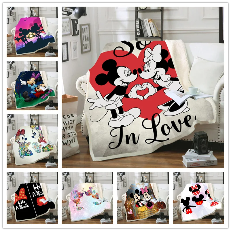 Одеяло из шерпы с принтом Микки и Минни, покрывало для дивана, пост...